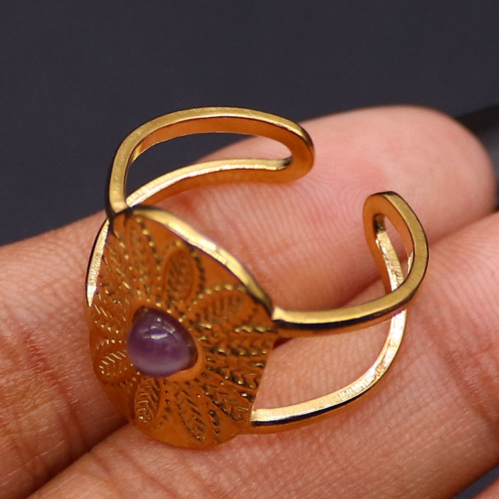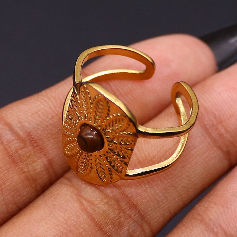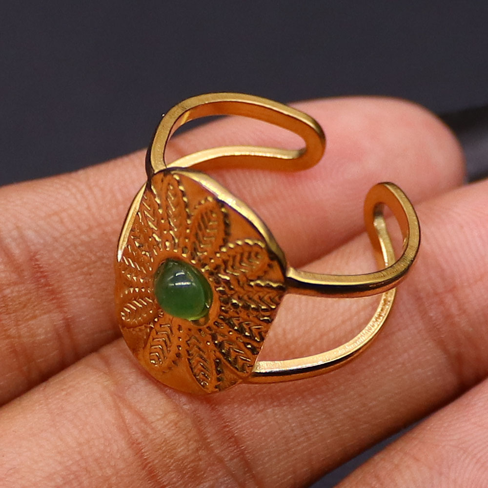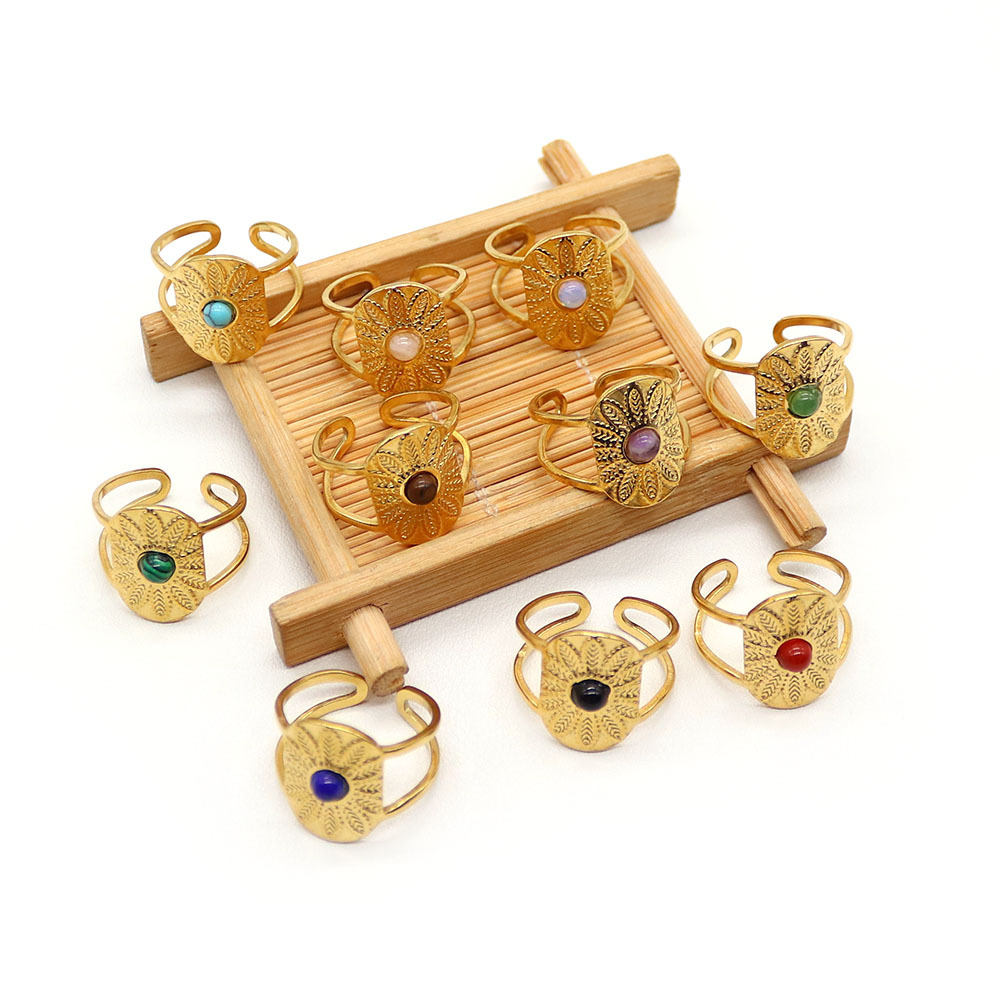 Gemstone Finger Ring, 304 Cruach dhosmálta, le Cloch Nádúrtha, dath an óir plated, jewelry faisin, dathanna níos mó le haghaidh rogha, 21x18mm, Díolta De réir PC