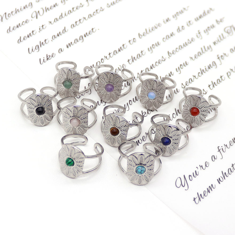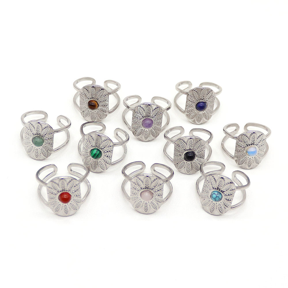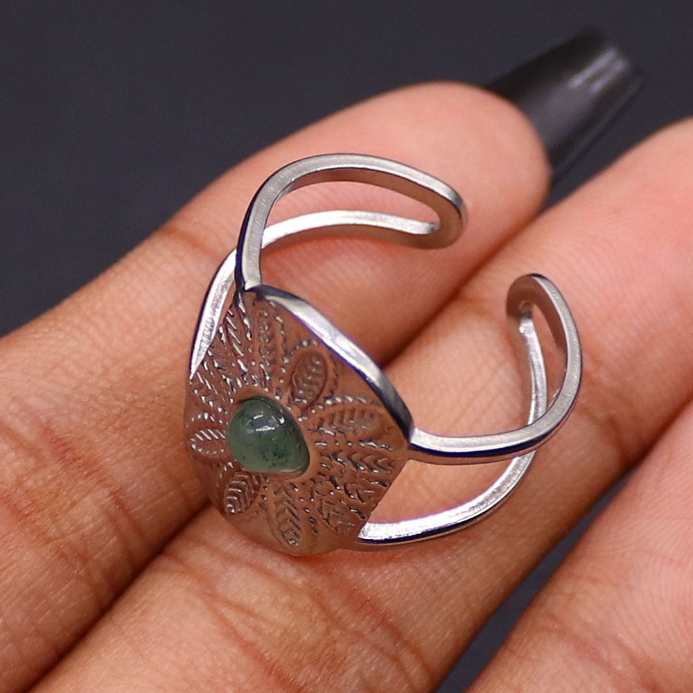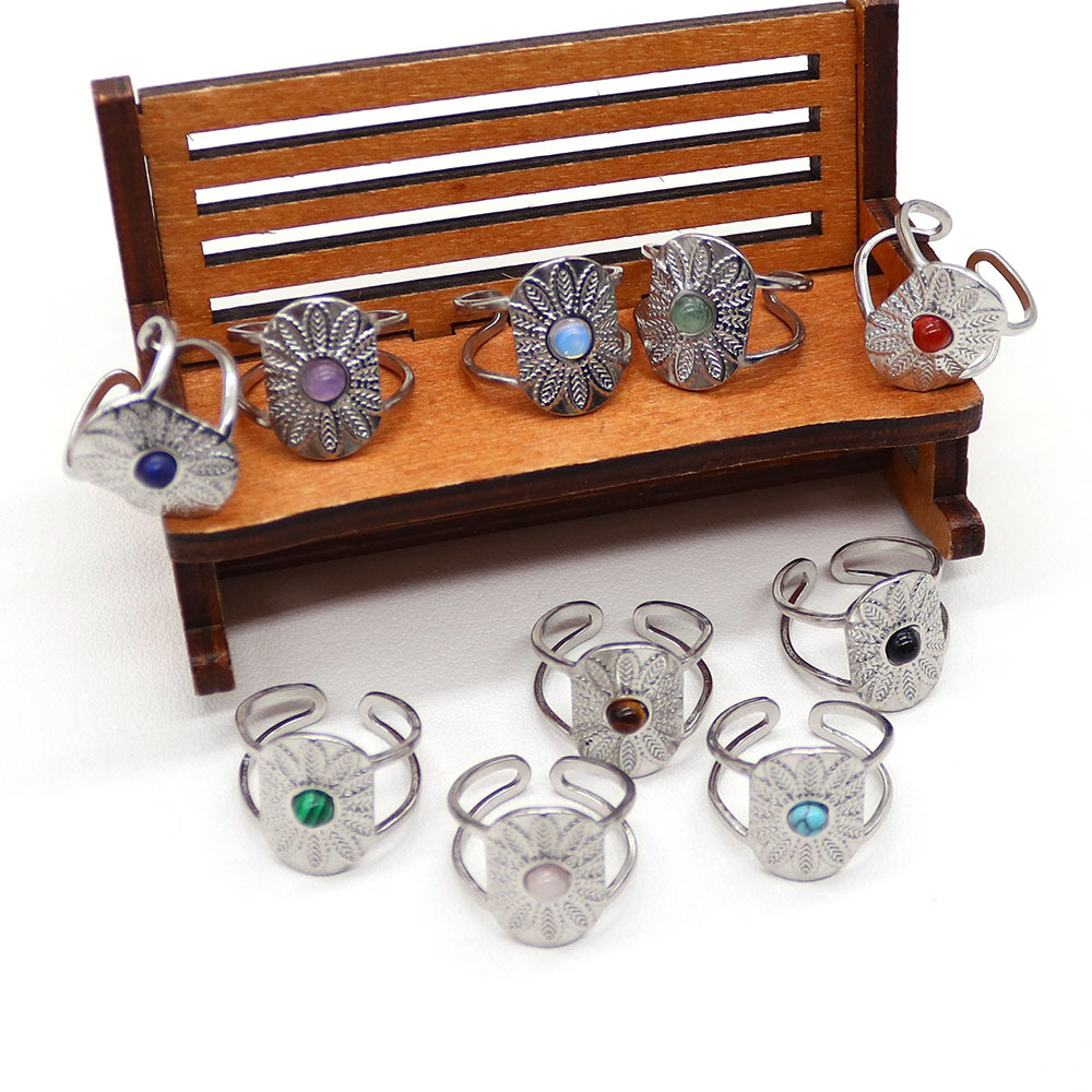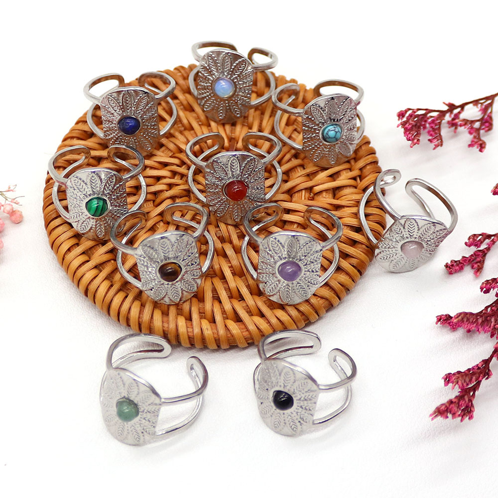 Gemstone Finger Ring, 304 Cruach dhosmálta, le Cloch Nádúrtha, dath airgid plated, jewelry faisin, dathanna níos mó le haghaidh rogha, 21x18mm, Díolta De réir PC