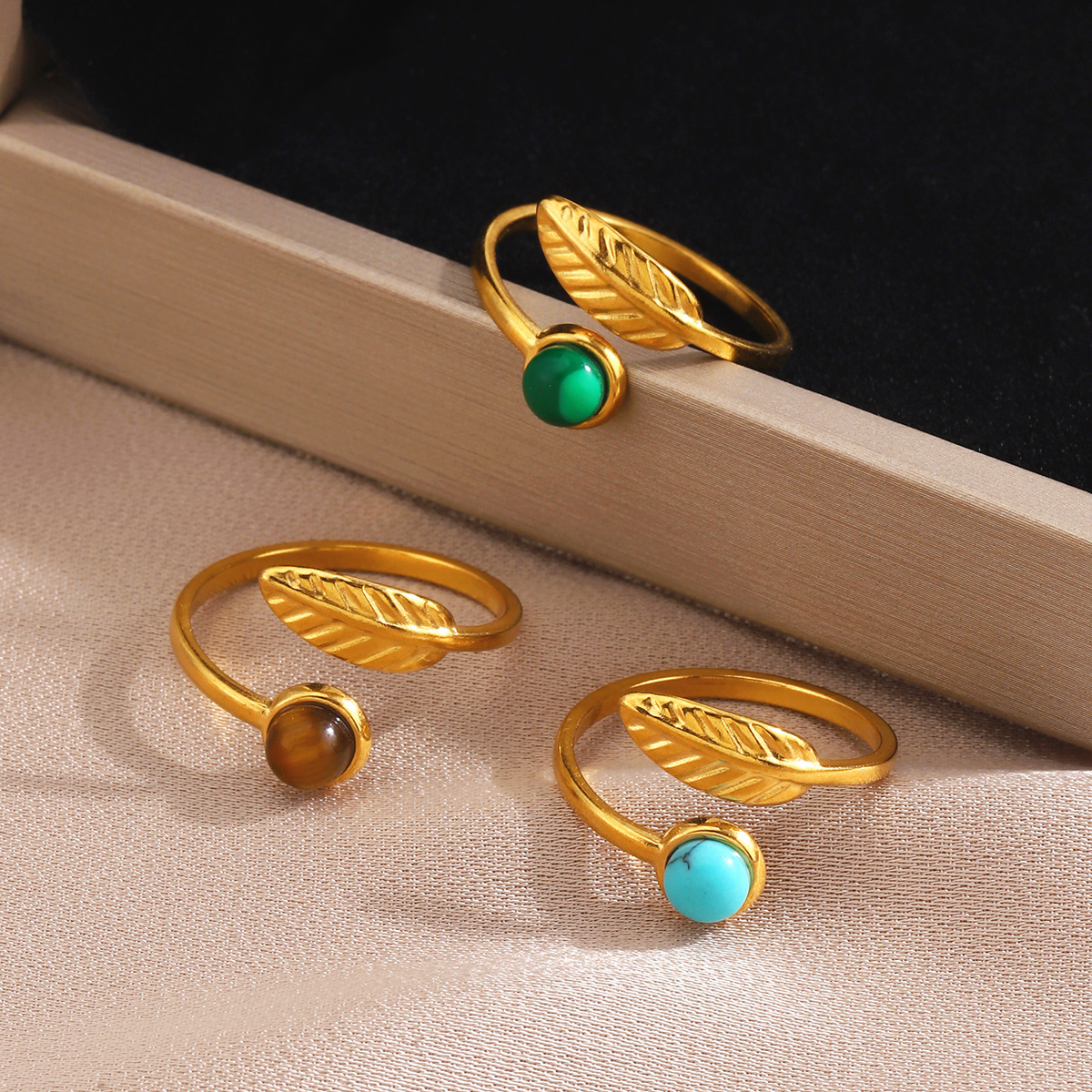 Gemstone Finger Ring, 304 Cruach dhosmálta, le Cloch Nádúrtha, 18K ór plátáilte, jewelry faisin & ábhair éagsúla do rogha & do bhean, Díolta De réir PC