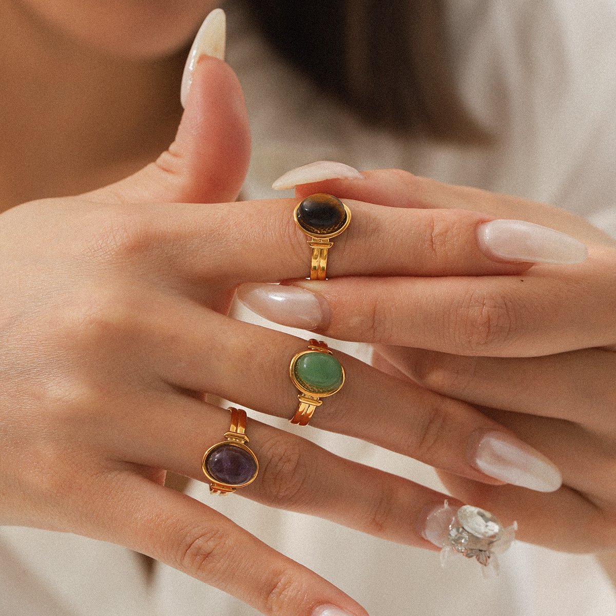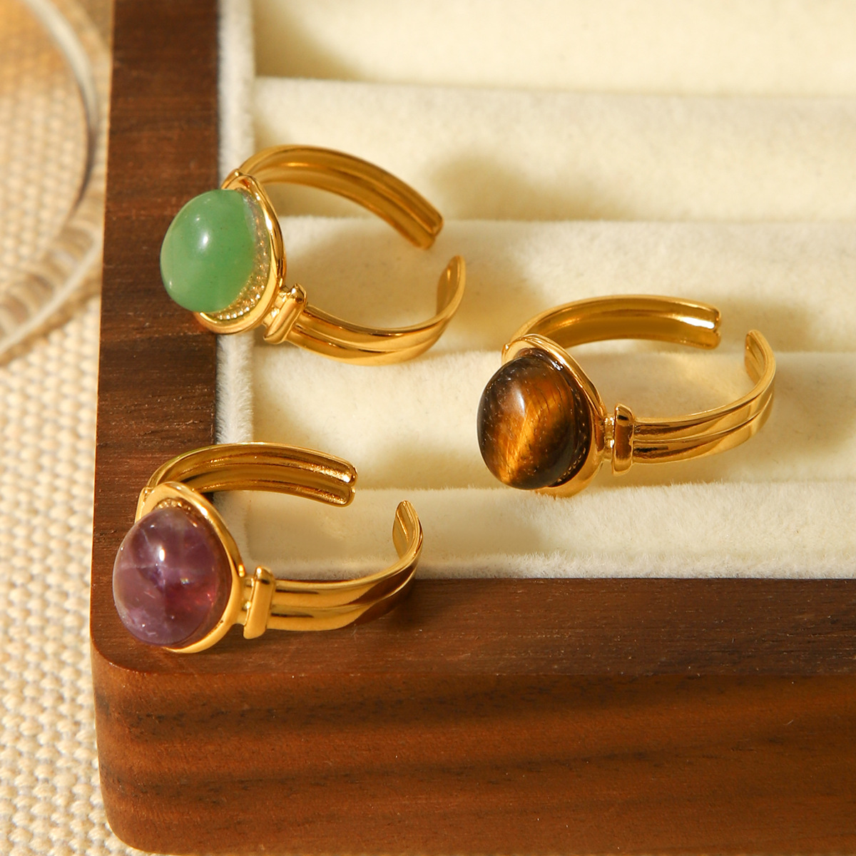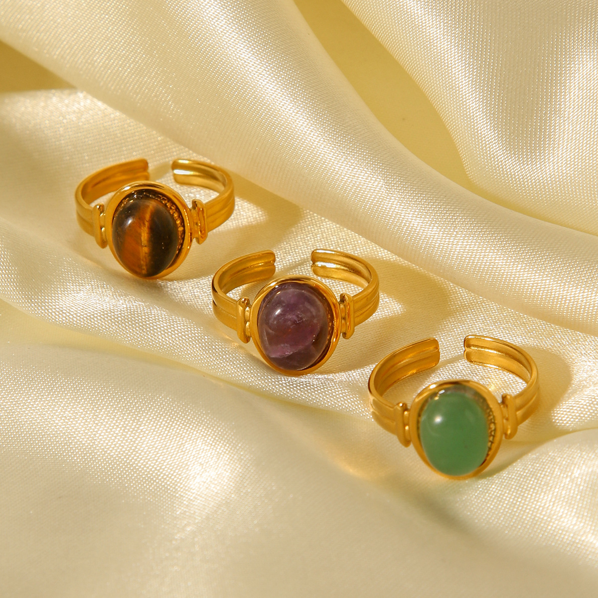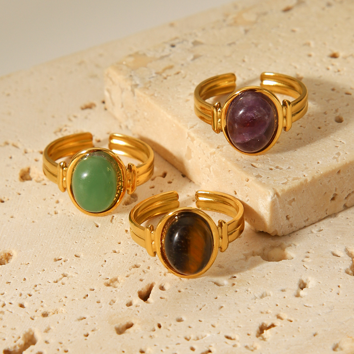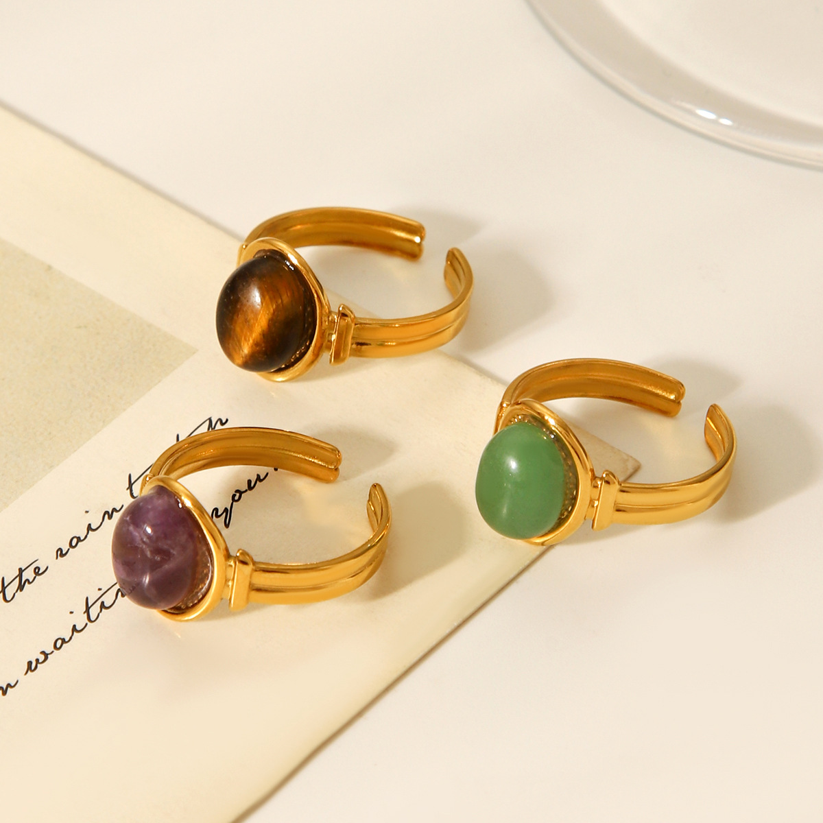 Gemstone Finger Ring, 304 Cruach dhosmálta, le Cloch Nádúrtha, 18K ór plátáilte, jewelry faisin & ábhair éagsúla do rogha & do bhean, Díolta De réir PC