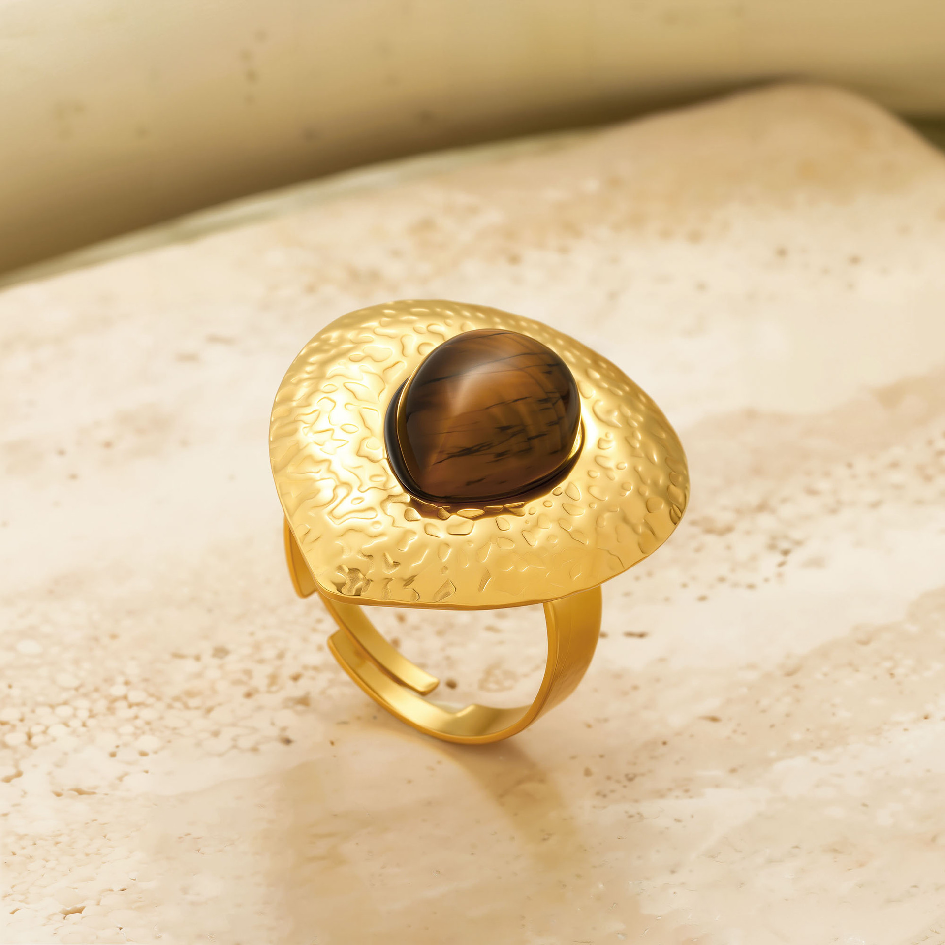 Gemstone Finger Ring, 304 Cruach dhosmálta, le Tíogair Súl, Teardrop, plátáilte, jewelry faisin & do bhean, órga, Díolta De réir PC