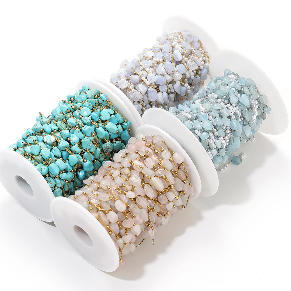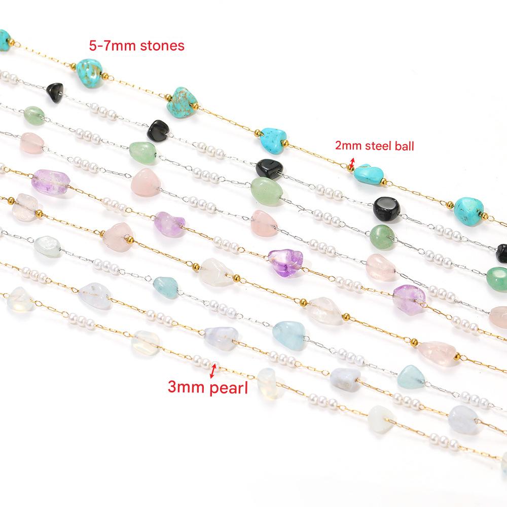Gemstone feirbthe Slabhra, 304 Cruach dhosmálta, le Cloch Nádúrtha & Pearl Plaisteacha, dath an óir plated, DIY, dathanna níos mó le haghaidh rogha, Díolta De réir m