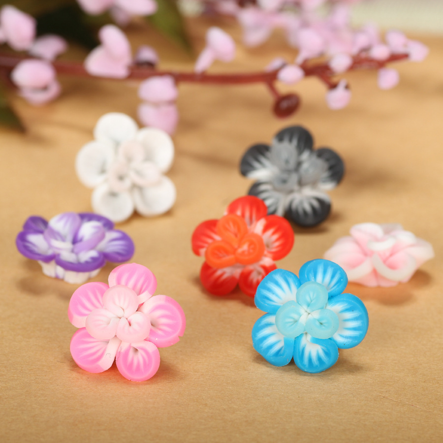 Gruaige Accessories Torthaí DIY, Polymer Clay, Flower, dathanna níos mó le haghaidh rogha, 15x8mm, 100ríomhairí pearsanta/Mála, Díolta De réir Mála