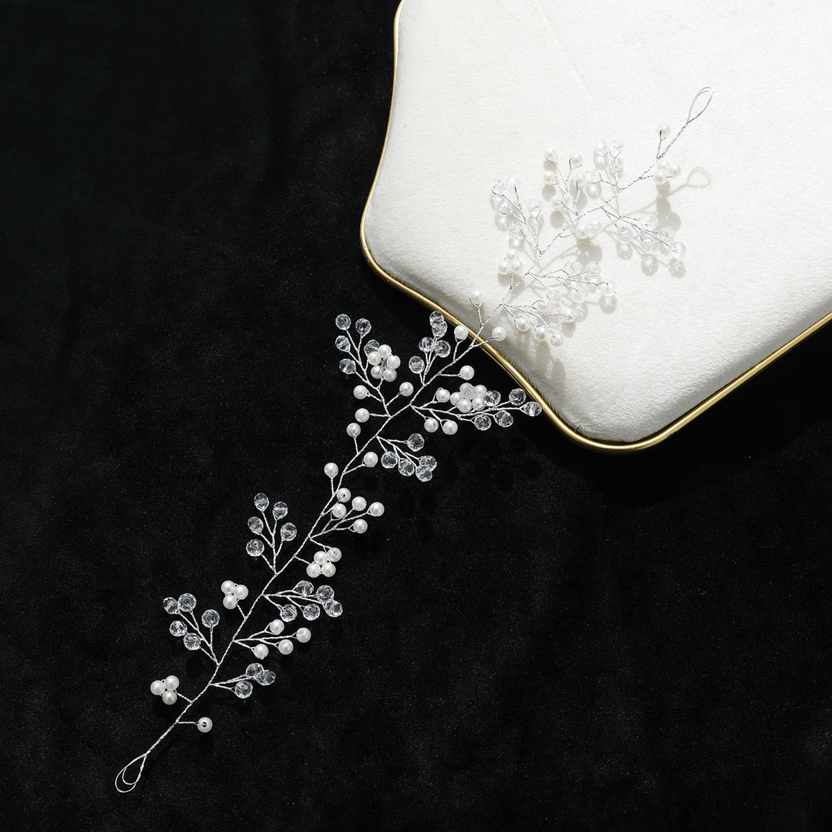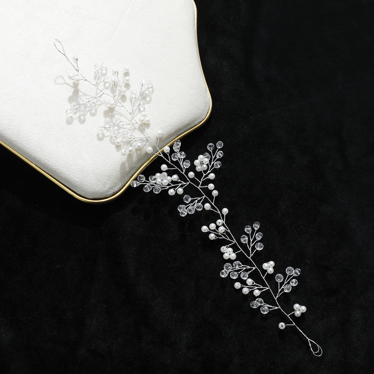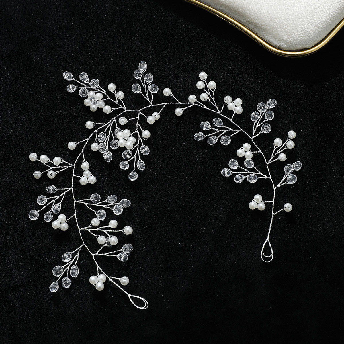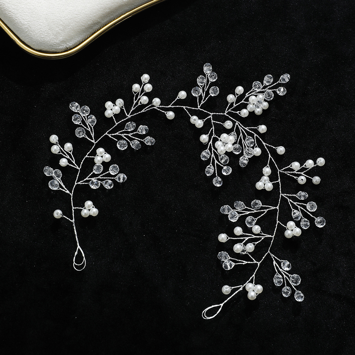 Gruaige Wreath, Pearl Plaisteacha, le sreang práis & Crystal, lámhdhéanta, jewelry faisin & do bhean, airgid, 310x80mm, Díolta De réir PC