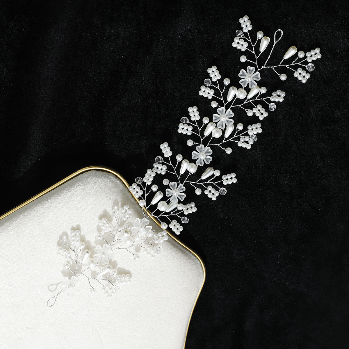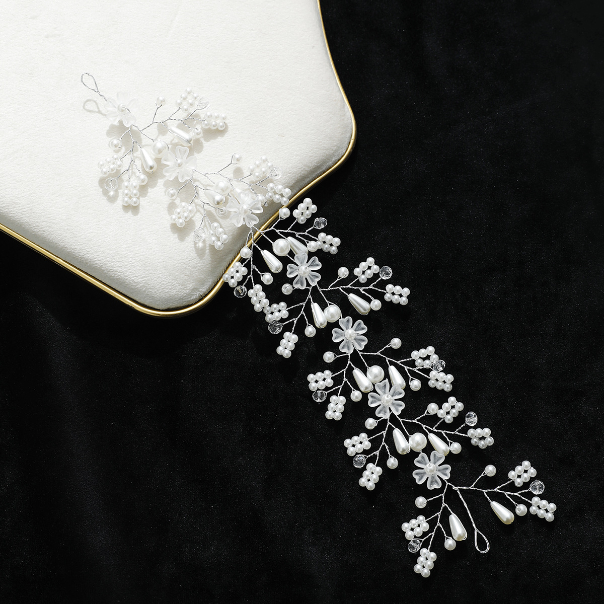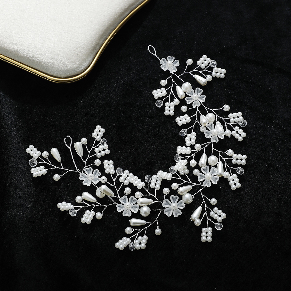 Gruaige Wreath, Pearl Plaisteacha, le sreang práis & Crystal, lámhdhéanta, jewelry faisin & do bhean, airgid, 290x70mm, Díolta De réir PC