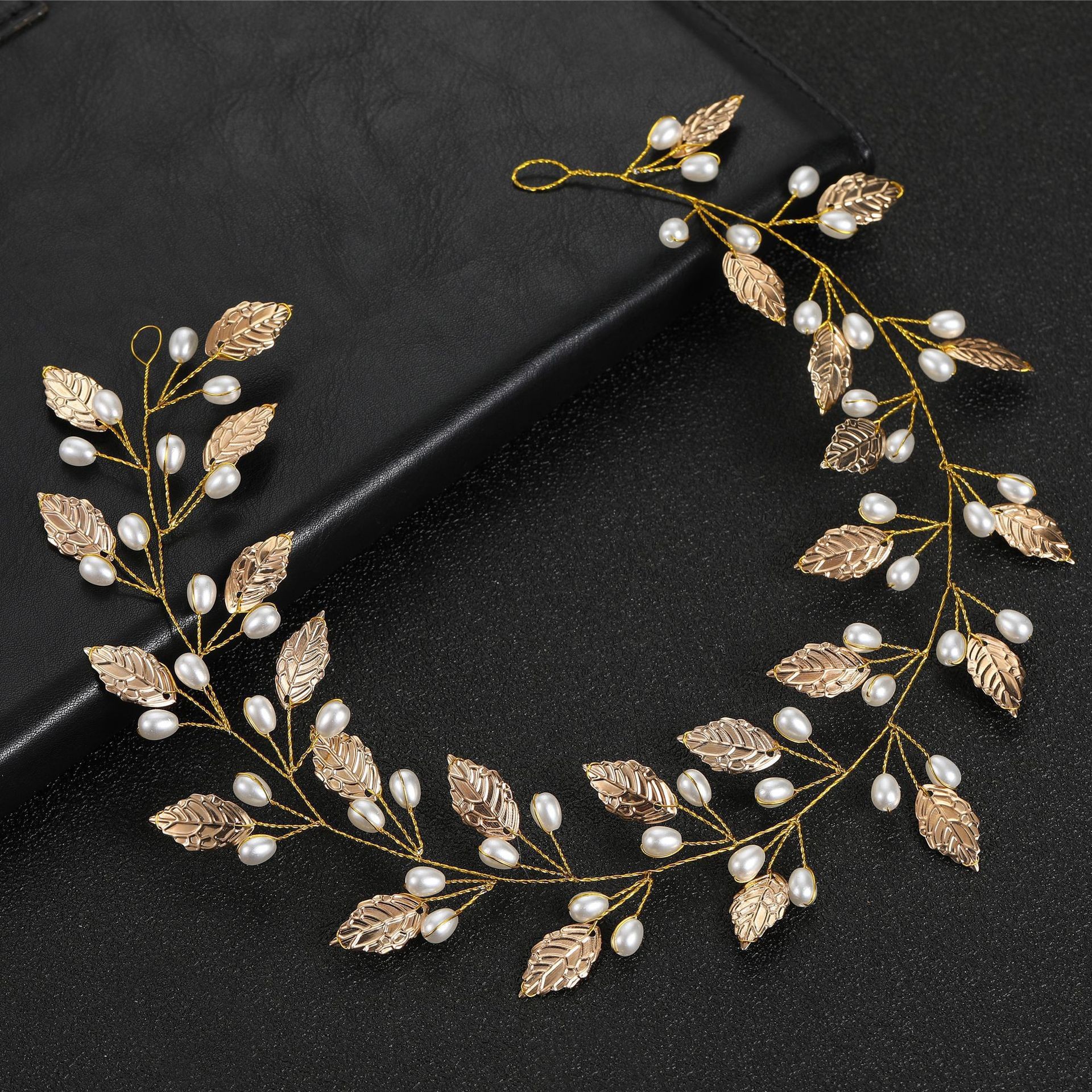 Gruaige Wreath, Sinc Alloy, le Pearl Plaisteacha & Iarann, lámhdhéanta, jewelry faisin & do bridal, órga, 370x40mm, Díolta De réir PC