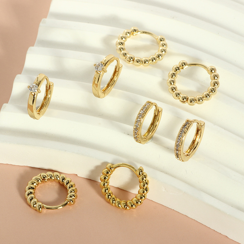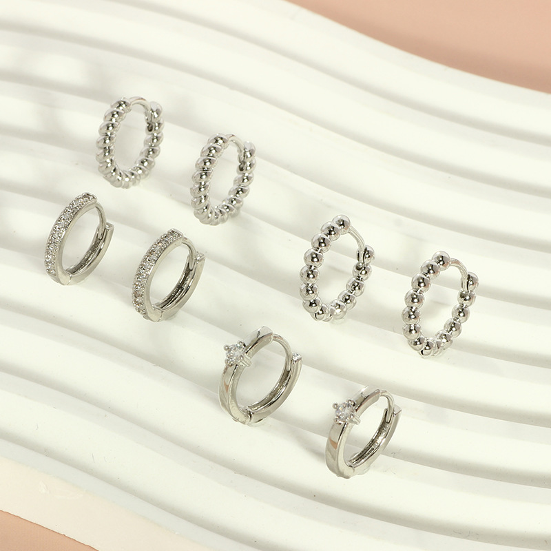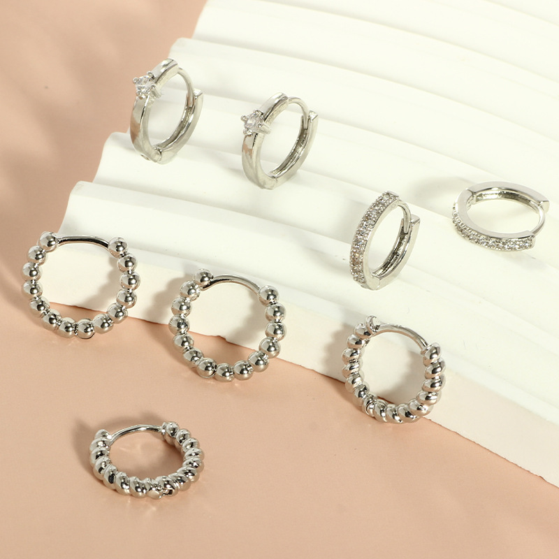 1:Gold 8-piece set2:Silver 8-piece set3:A pair of golden single zircons4:Silver single zirconium pair5:Pair of golden beads6:A pair of silver beads7:A pair of golden white zirconium8:A pair of silver and white zirconium