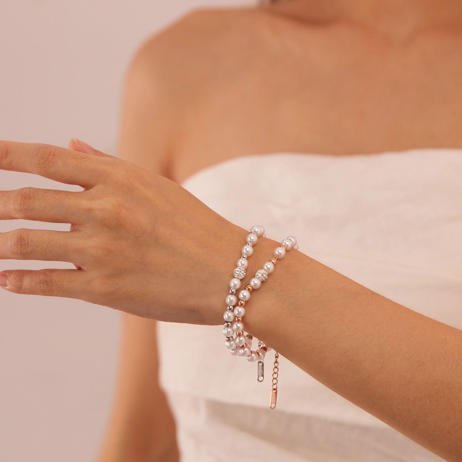 Jewelry Cruach dhosmálta Bracelet, 304 Cruach dhosmálta, le Pearl Plaisteacha, plátáilte, jewelry faisin & micrea réiteach zirconia ciúbach & do bhean, dathanna níos mó le haghaidh rogha, Díolta De réir PC