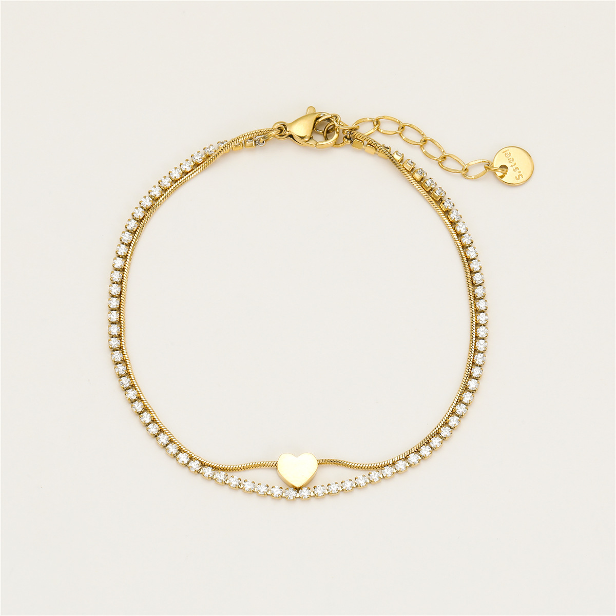 Jewelry Cruach dhosmálta Bracelet, 304 Cruach dhosmálta, plátáilte, Ciseal Dúbailte & micrea réiteach zirconia ciúbach & do bhean, dathanna níos mó le haghaidh rogha, Díolta De réir PC