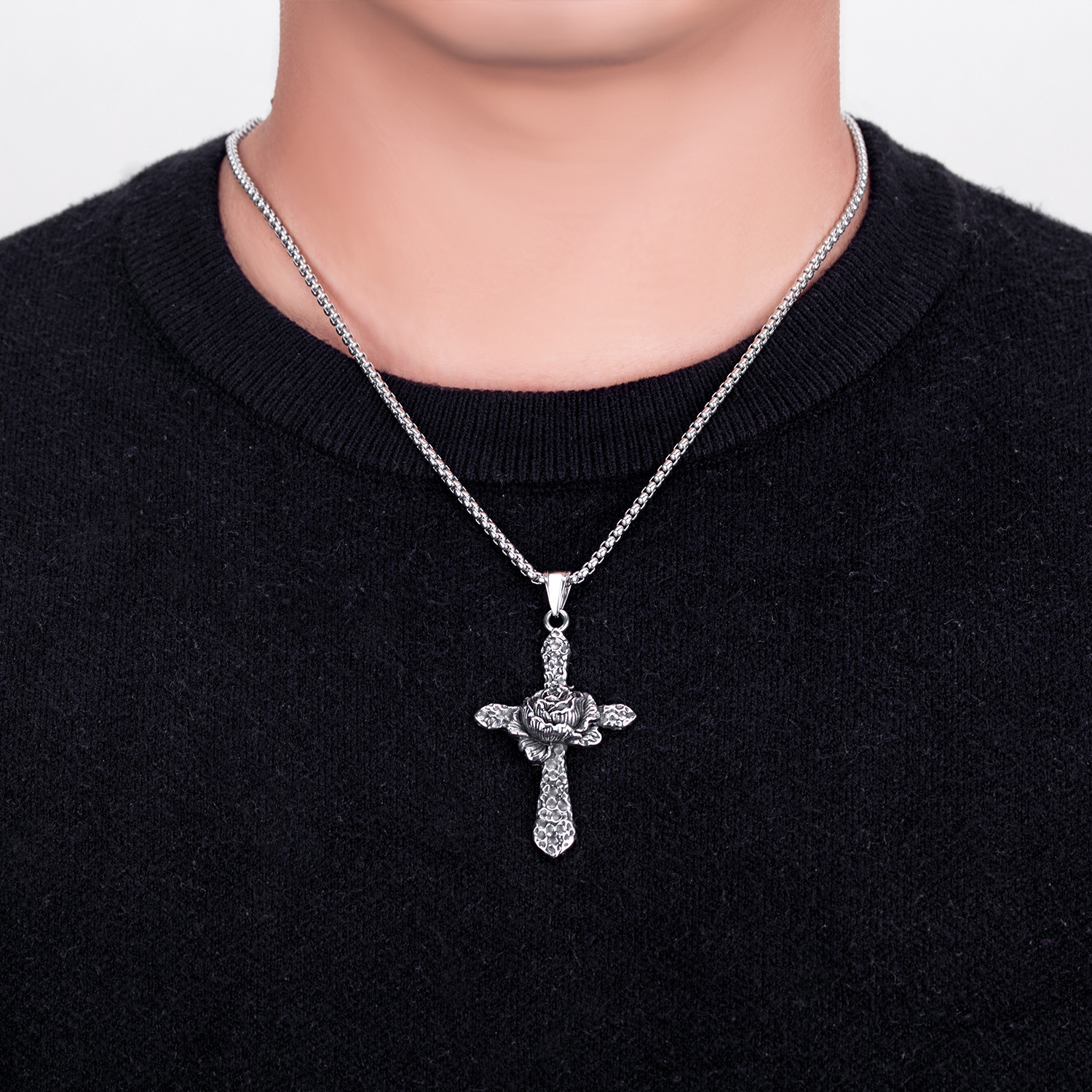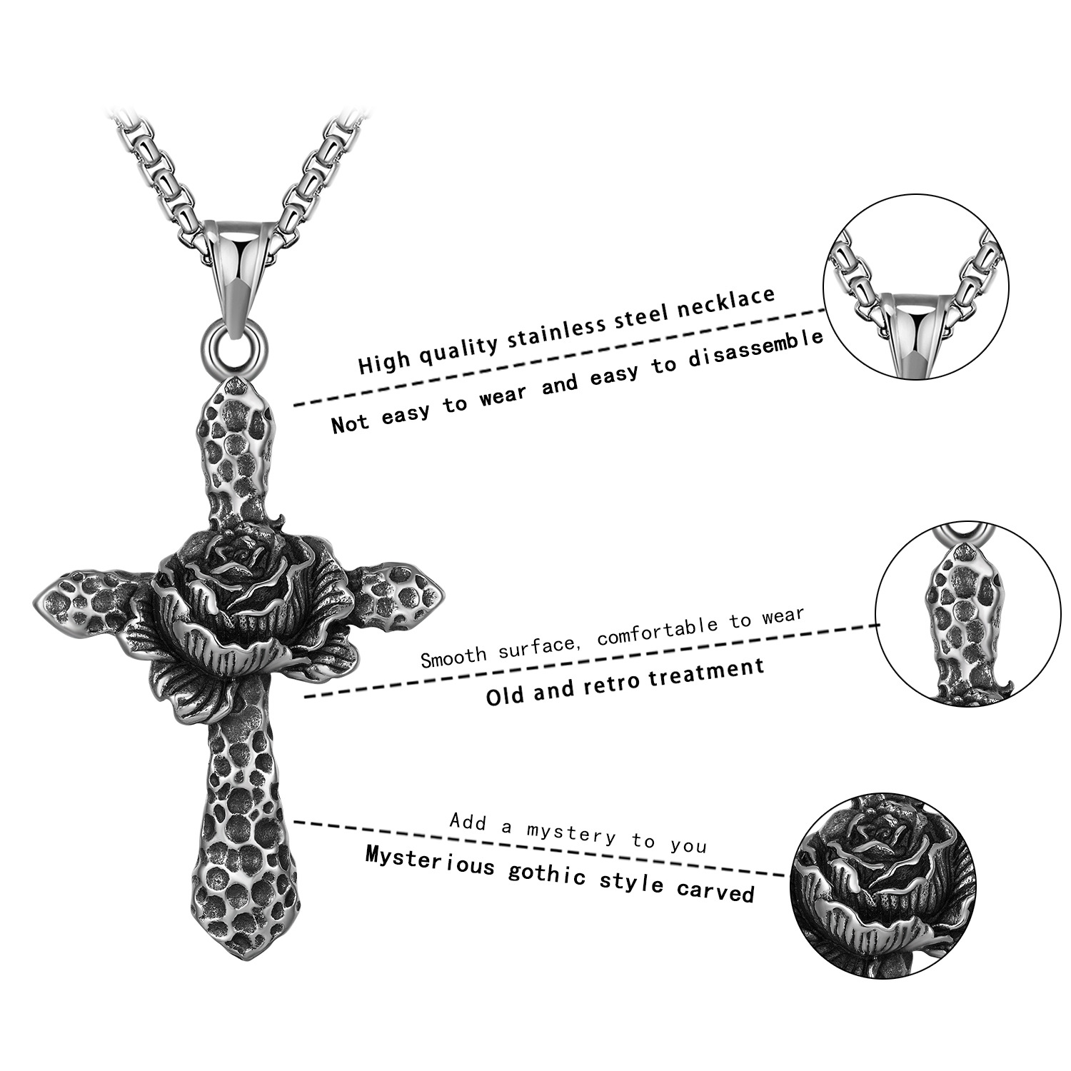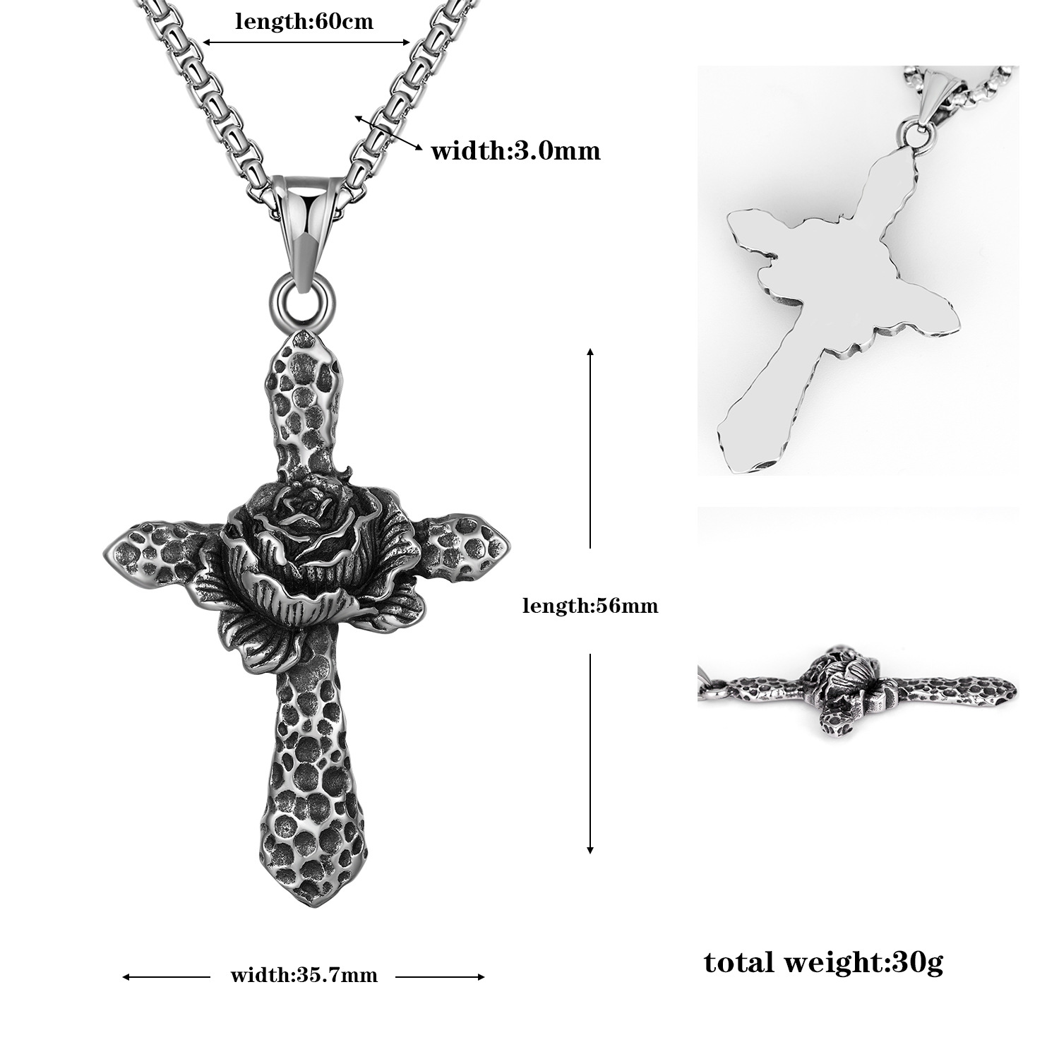 Jewelry Cruach dhosmálta muince, 316 Cruach dhosmálta, Cross, jewelry faisin & unisex, dath bunaidh, Fad 60 cm, Díolta De réir PC
