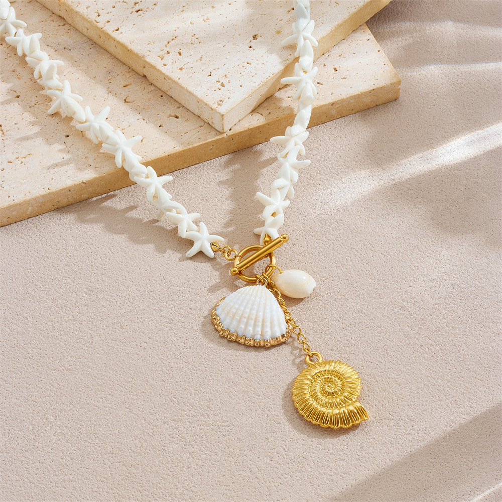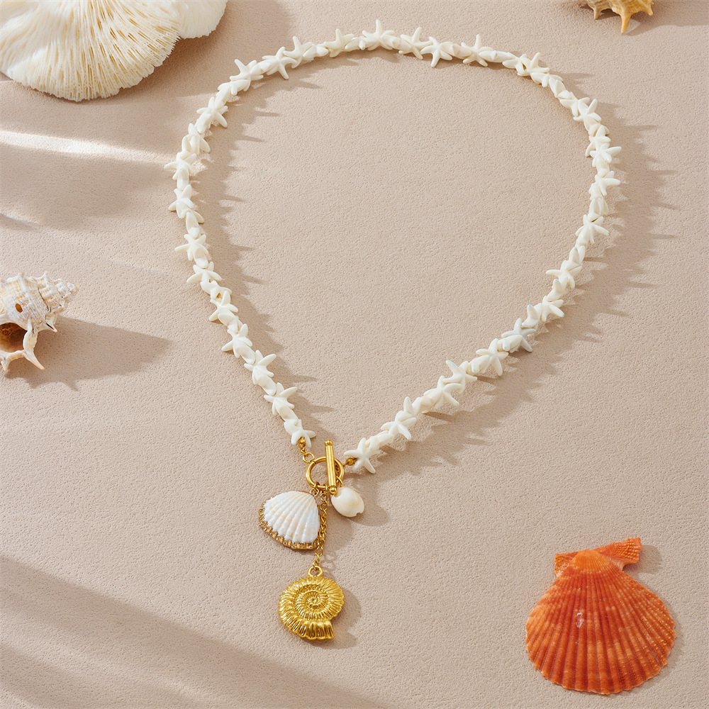 Jewelry Cruach dhosmálta muince, 304 Cruach dhosmálta, le Shell, dath an óir plated, jewelry faisin & do bhean, Díolta De réir PC