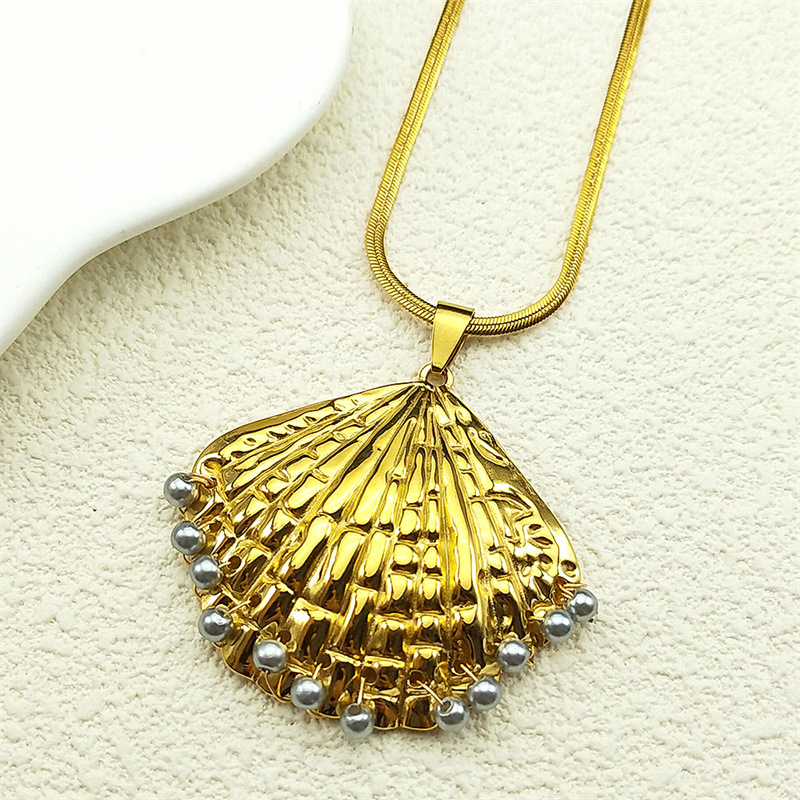 Jewelry Cruach dhosmálta muince, 304 Cruach dhosmálta, le Shell, micrea réiteach zirconia ciúbach & do bhean, Fad 41-50 cm, Díolta De réir PC