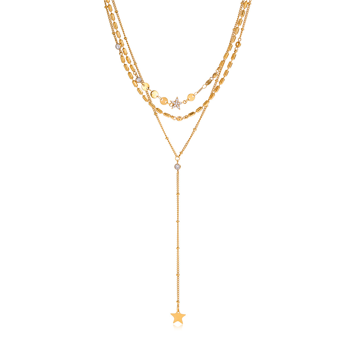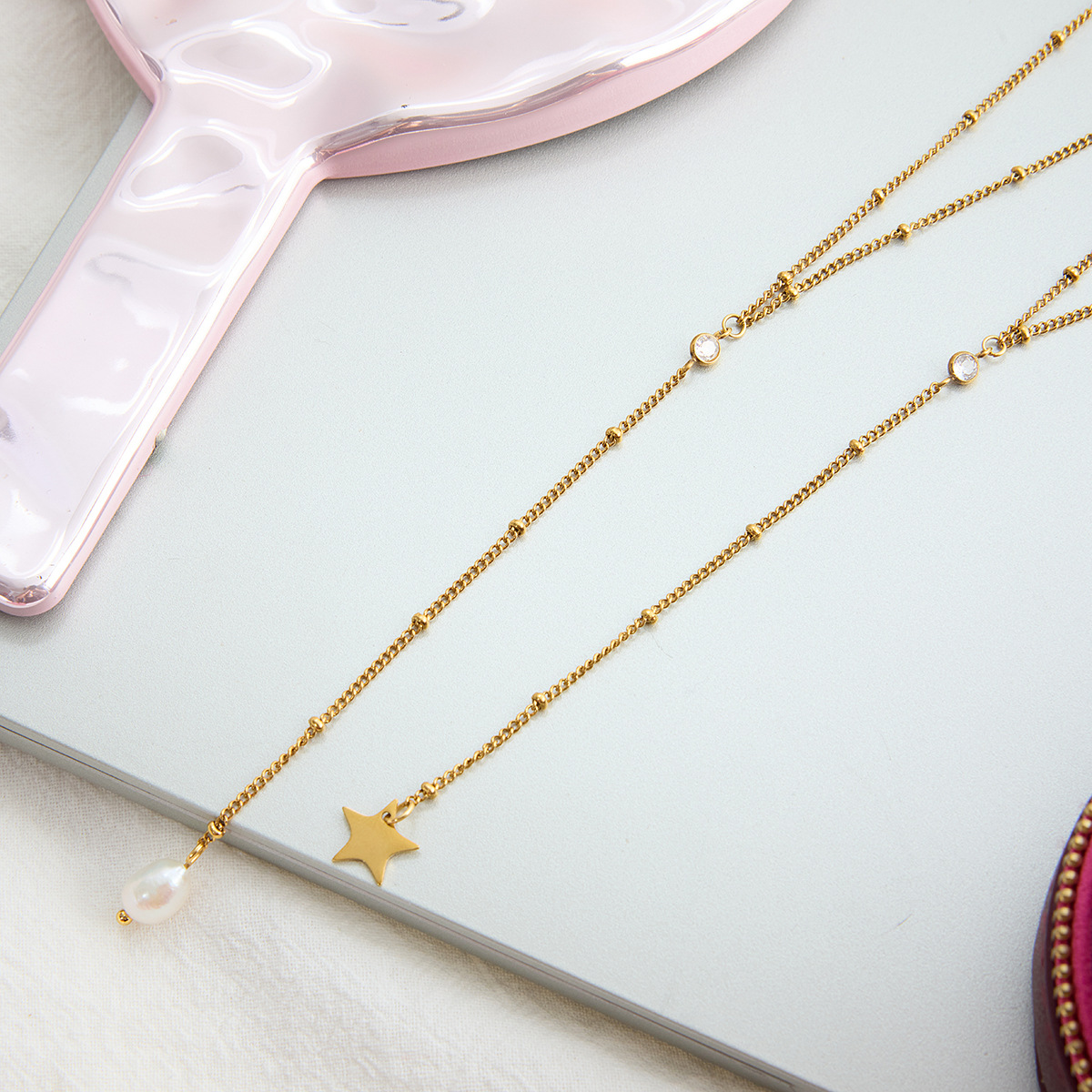 Jewelry Cruach dhosmálta muince, 304 Cruach dhosmálta, le Ciúbach Zirconia & Pearl Plaisteacha, 18K ór plátáilte, trí shraith & stíleanna éagsúla do rogha & do bhean, Díolta De réir PC