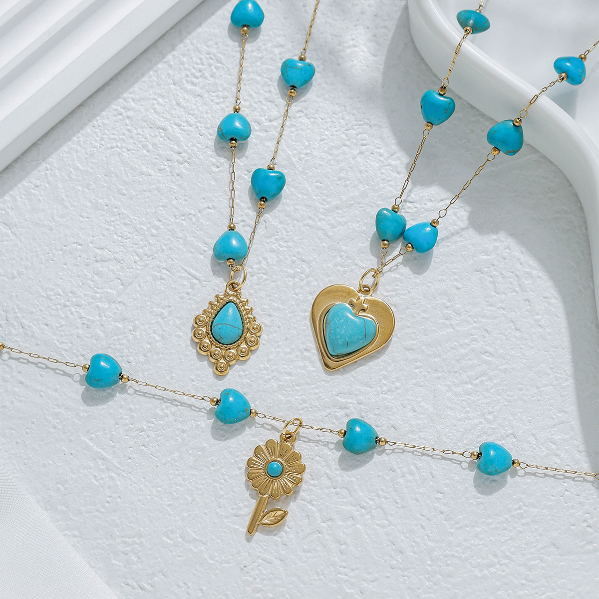 Jewelry Cruach dhosmálta muince, 304 Cruach dhosmálta, le Turquoise sintéiseach, dath an óir plated, jewelry faisin, dathanna níos mó le haghaidh rogha, Díolta De réir PC