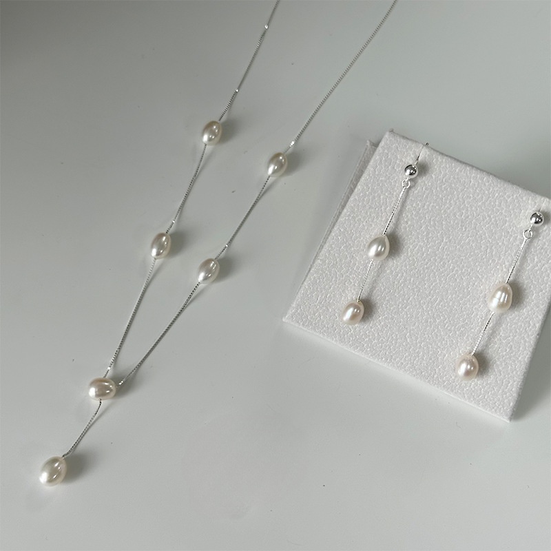 Jewelry Socraigh saothraithe Diúilicín Péarla Nádúrtha, earring & muince, 925 Sterling Silver, le Pearl Fionnuisce, dath airgid plated, jewelry faisin, dathanna níos mó le haghaidh rogha, 10x10x10mm, Díolta De réir PC