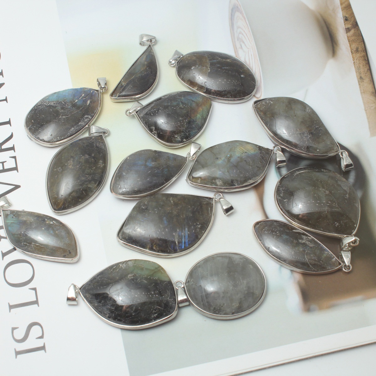 Labradorite Siogairlín, le Sinc Alloy, neamhrialta, go randamach a sheoltar go randamach & DIY, pendant size 30-50mm, Díolta De réir PC