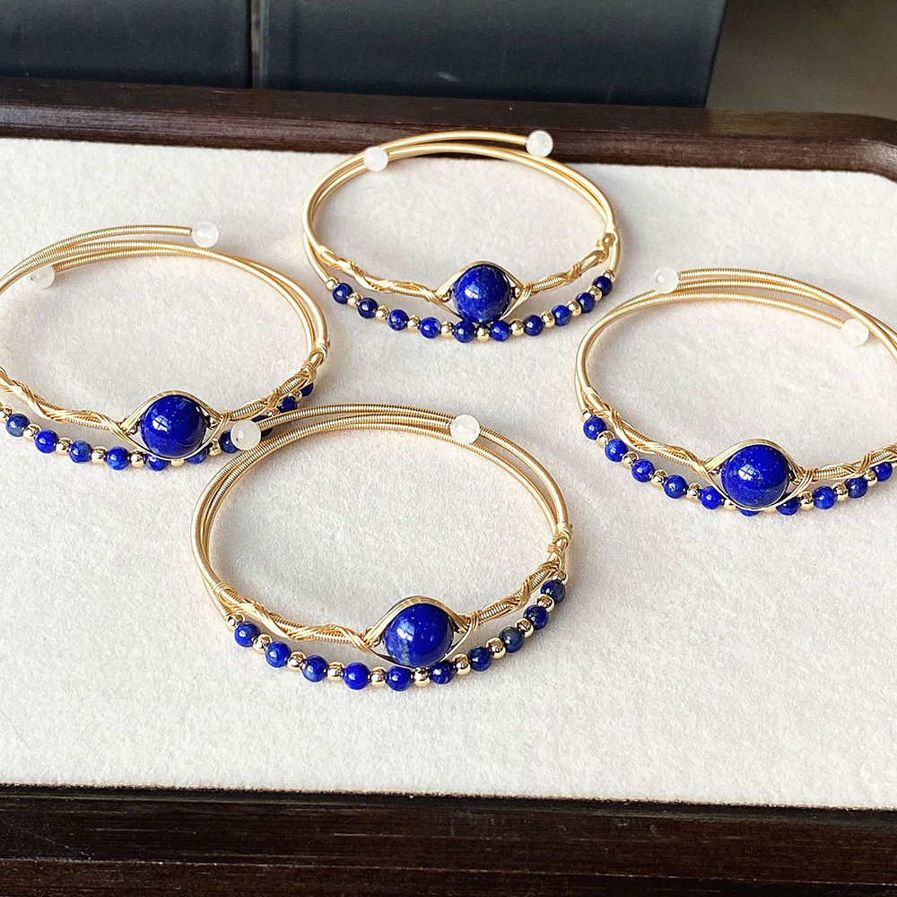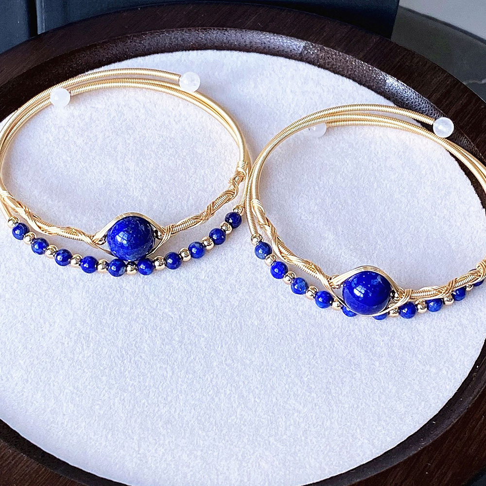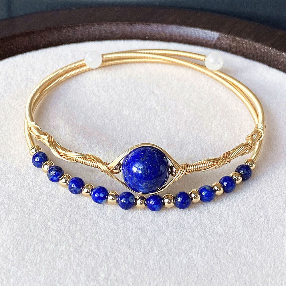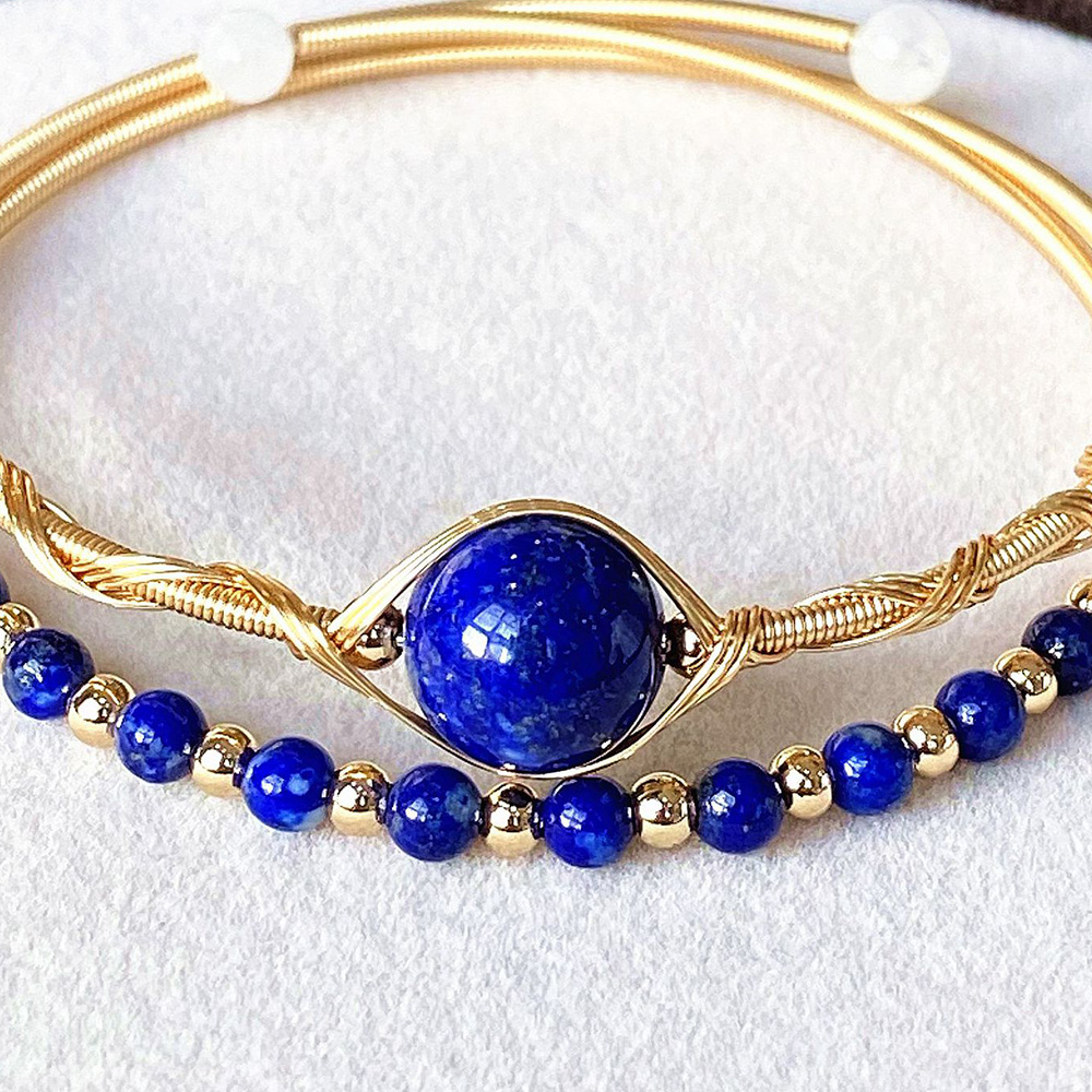 Lazuli Nádúrtha lazuli bráisléid, Prás, le Lapis Lazuli, 14K óir líonadh, Ciseal Dúbailte & jewelry faisin & do bhean, Inner diameter :55mm, Díolta De réir PC