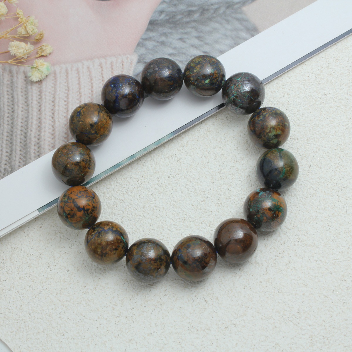 Lazuli Nádúrtha lazuli bráisléid, Lapis lazuli Phenix, jewelry faisin, dathanna measctha, Fad Thart 21 cm, Díolta De réir PC