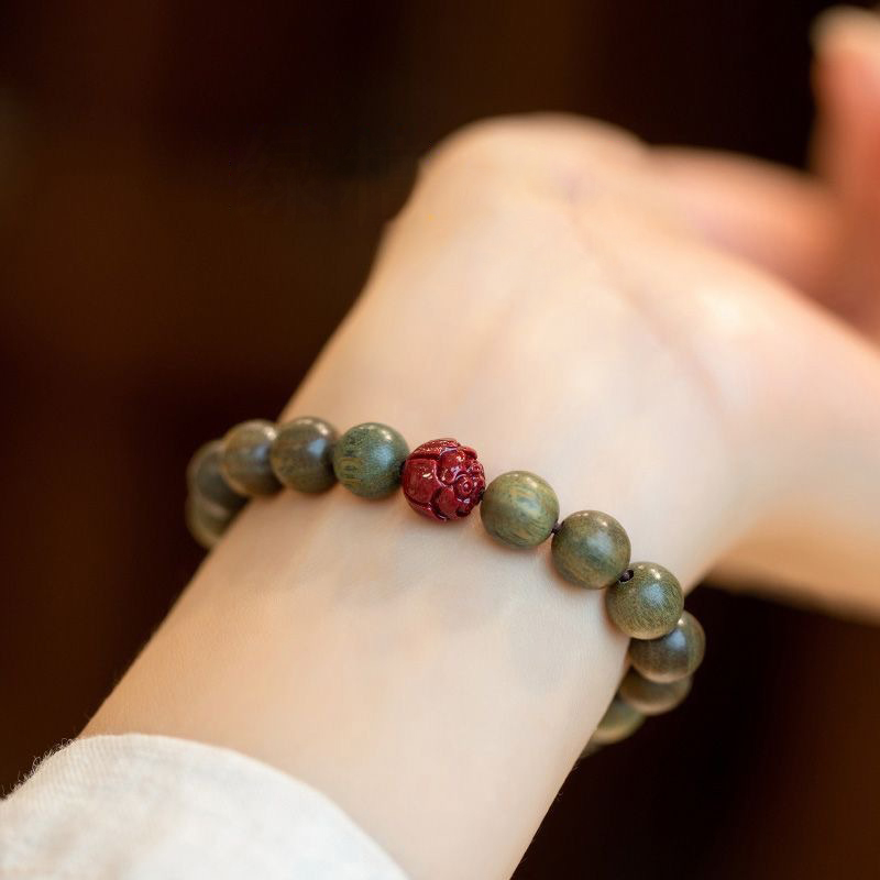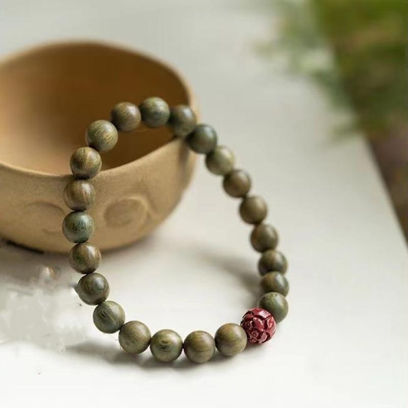 sandalwood Glas Bracelet, le Cionnabair, lámhdhéanta, jewelry faisin & unisex, Fad Thart 17.8 cm, Díolta De réir PC