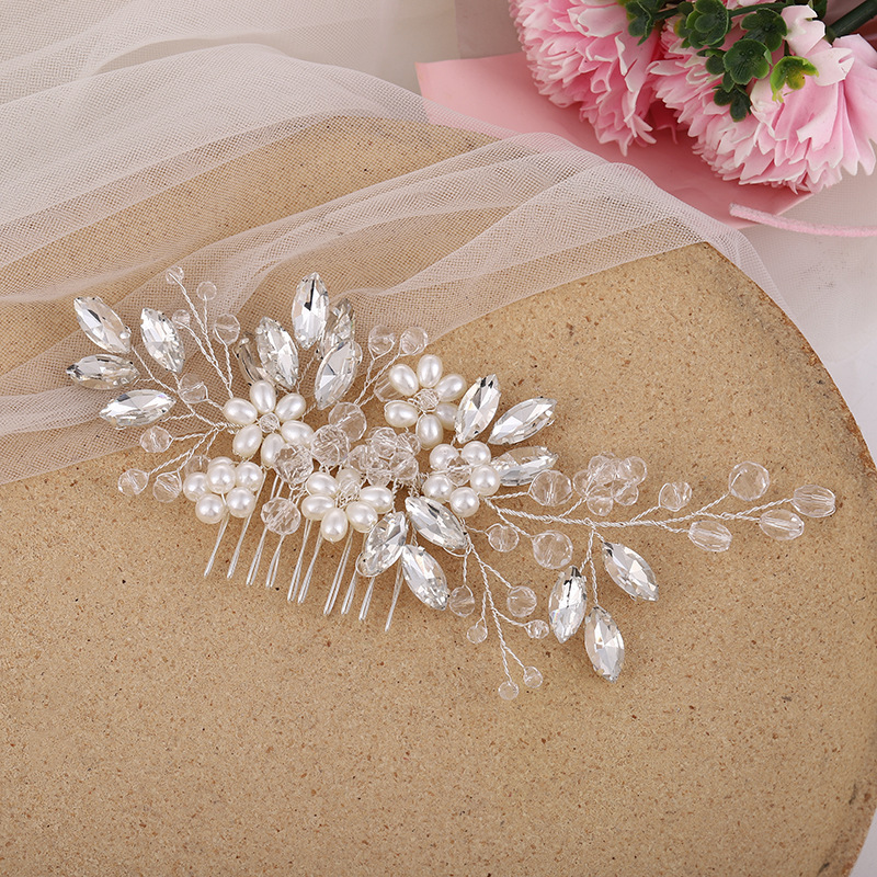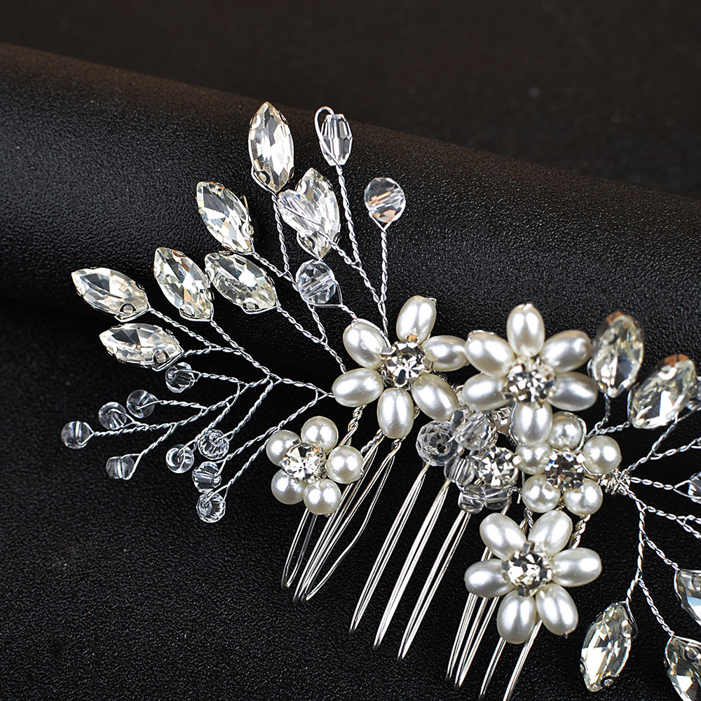 Maisiúil Gruaige Combs, Pearl Plaisteacha, le sreang práis & Rhinestone, lámhdhéanta, jewelry faisin & do bhean, airgid, 150x65mm, Díolta De réir PC