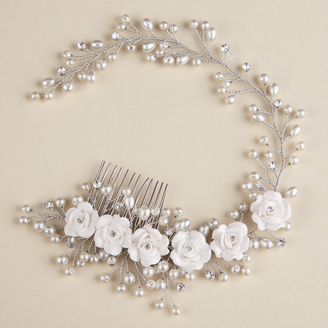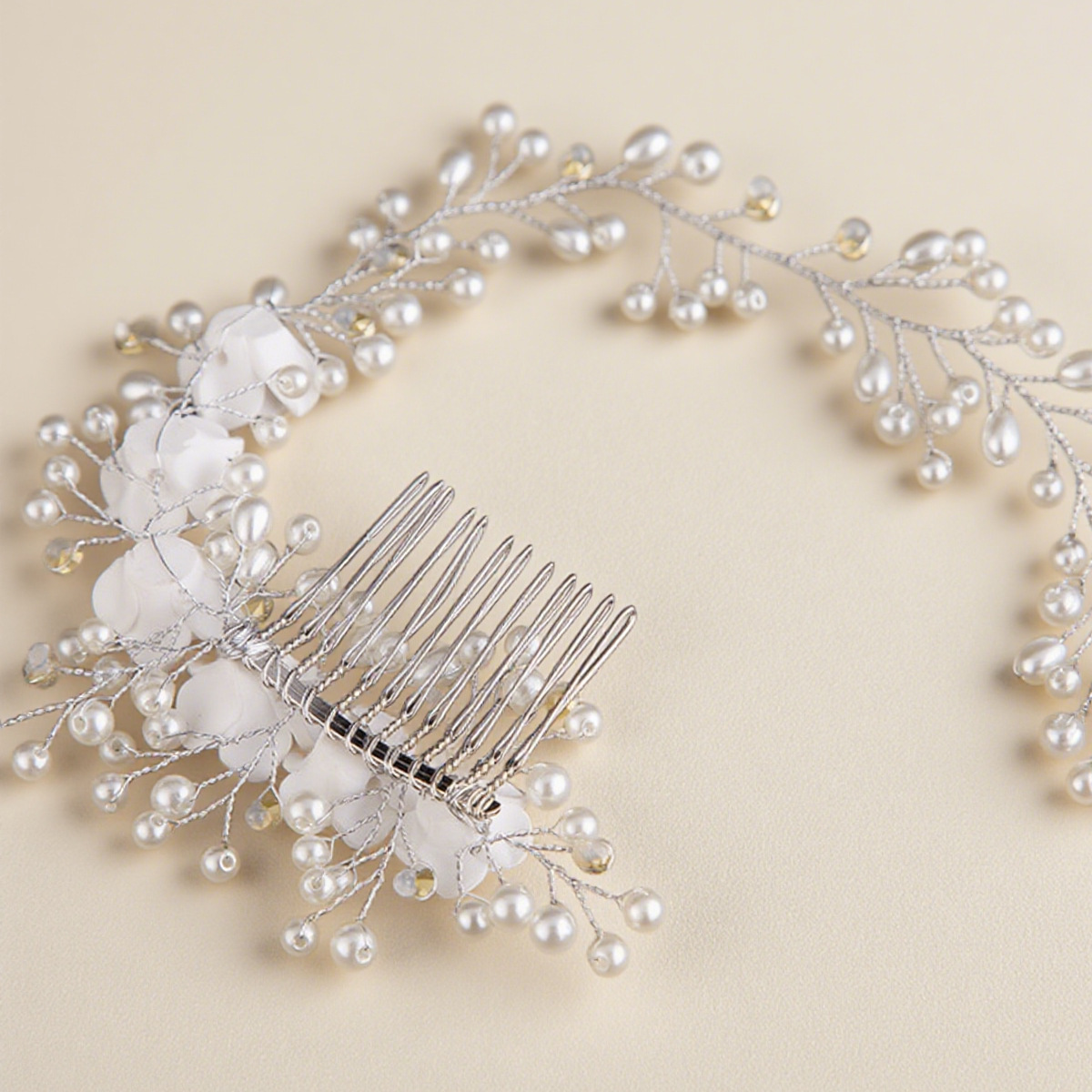 Maisiúil Gruaige Combs, Sinc Alloy, le sreang práis & Polymer Clay & Gloine & Pearl Plaisteacha, lámhdhéanta, jewelry faisin & do bhean, airgid, 345x65mm, Díolta De réir PC