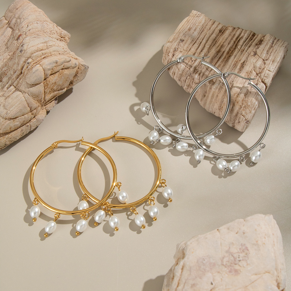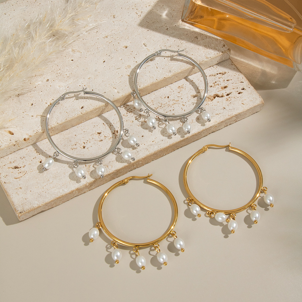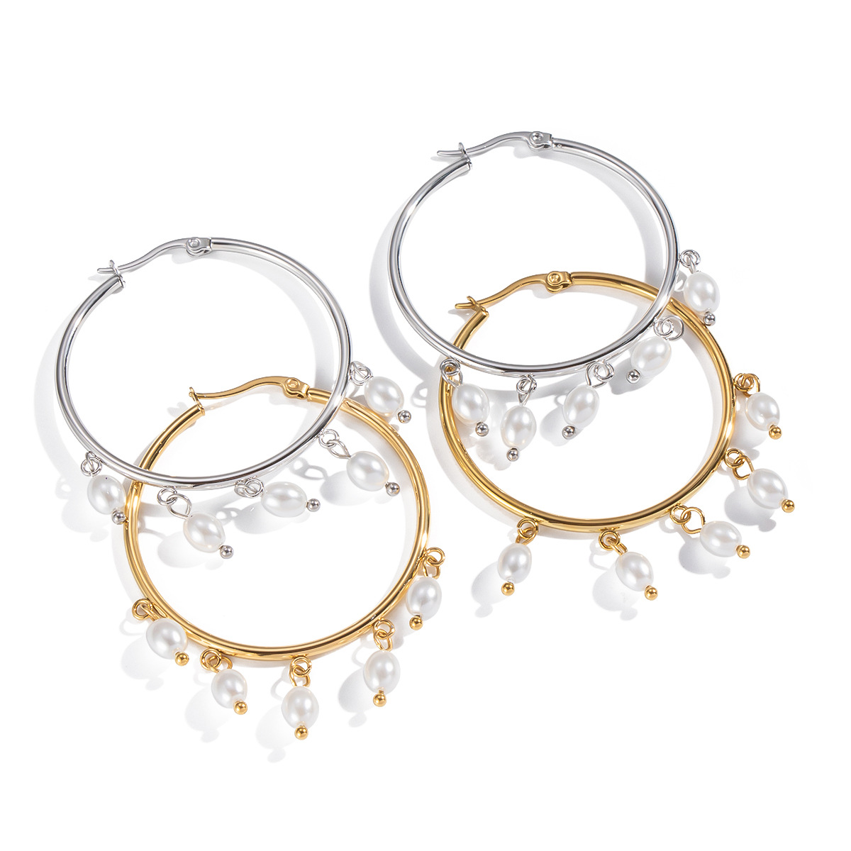 Mens Cruach dhosmálta fonsa Earring, 304 Cruach dhosmálta, le Pearl Plaisteacha, plátáilte, jewelry faisin & do bhean, Díolta De réir PC