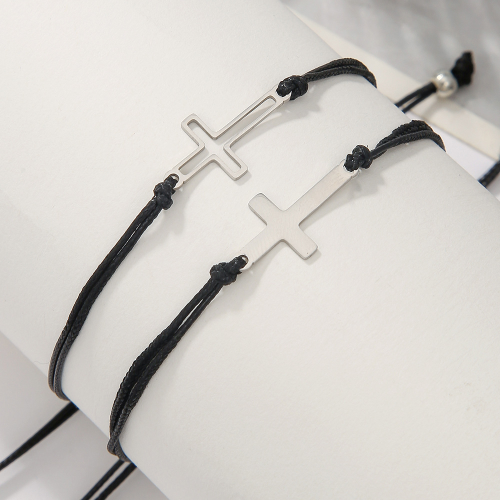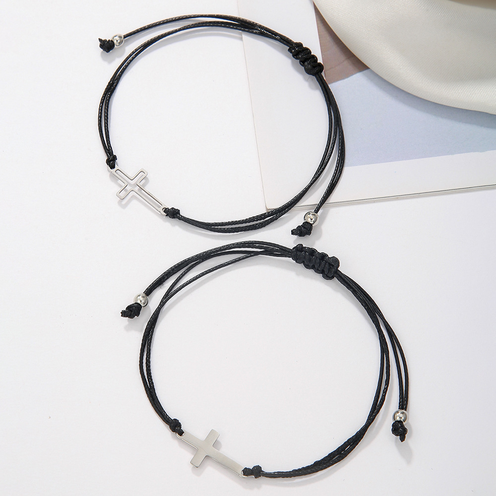 Faisean Cruthaigh Bráisléid Corda céir, 304 Cruach dhosmálta, le Céir, lámhdhéanta, 2 phíosa & unisex & log, dubh, Díolta De réir Socraigh