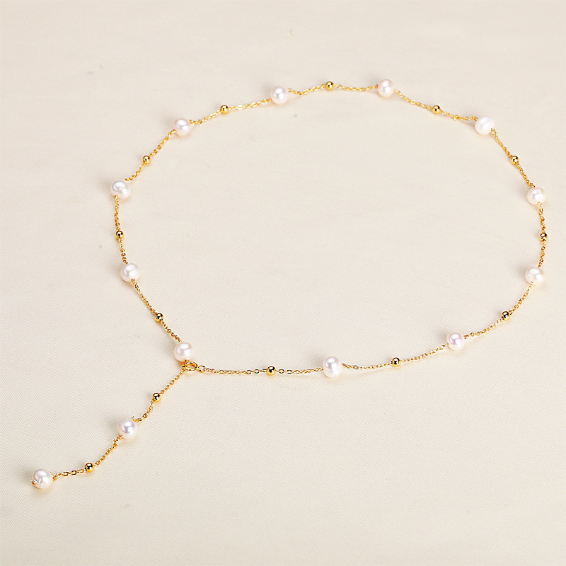 Muince Péarla Fionnuisce Prás Slabhra, le Pearl Fionnuisce, le 5.5cm slabhra extender, 18K ór plátáilte, stíleanna éagsúla do rogha & micrea réiteach zirconia ciúbach & do bhean & cruan, The pendant is 3.5cm long and 1.6cm wide, Fad 46 cm, Díolta De réir PC