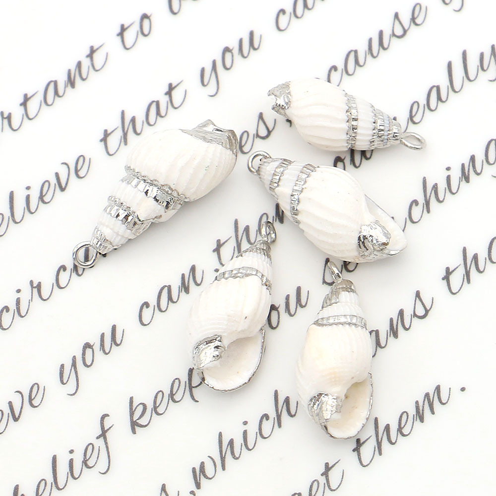Nádúrtha Trumpa Shell Pendants, le Iarann, Conch, dath airgid plated, DIY, dathanna measctha, 10-26mm, Díolta De réir PC