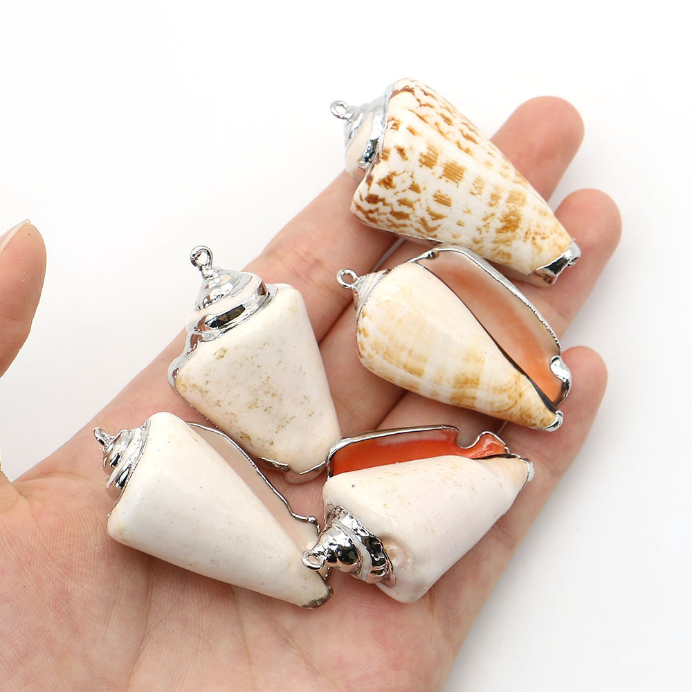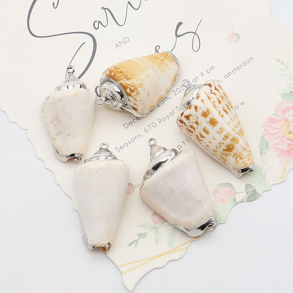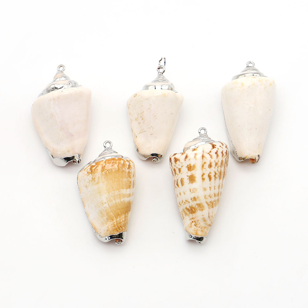 Nádúrtha Trumpa Shell Pendants, le Iarann, Conch, dath airgid plated, DIY, dathanna measctha, 25x42mm-27x48mm, Díolta De réir PC