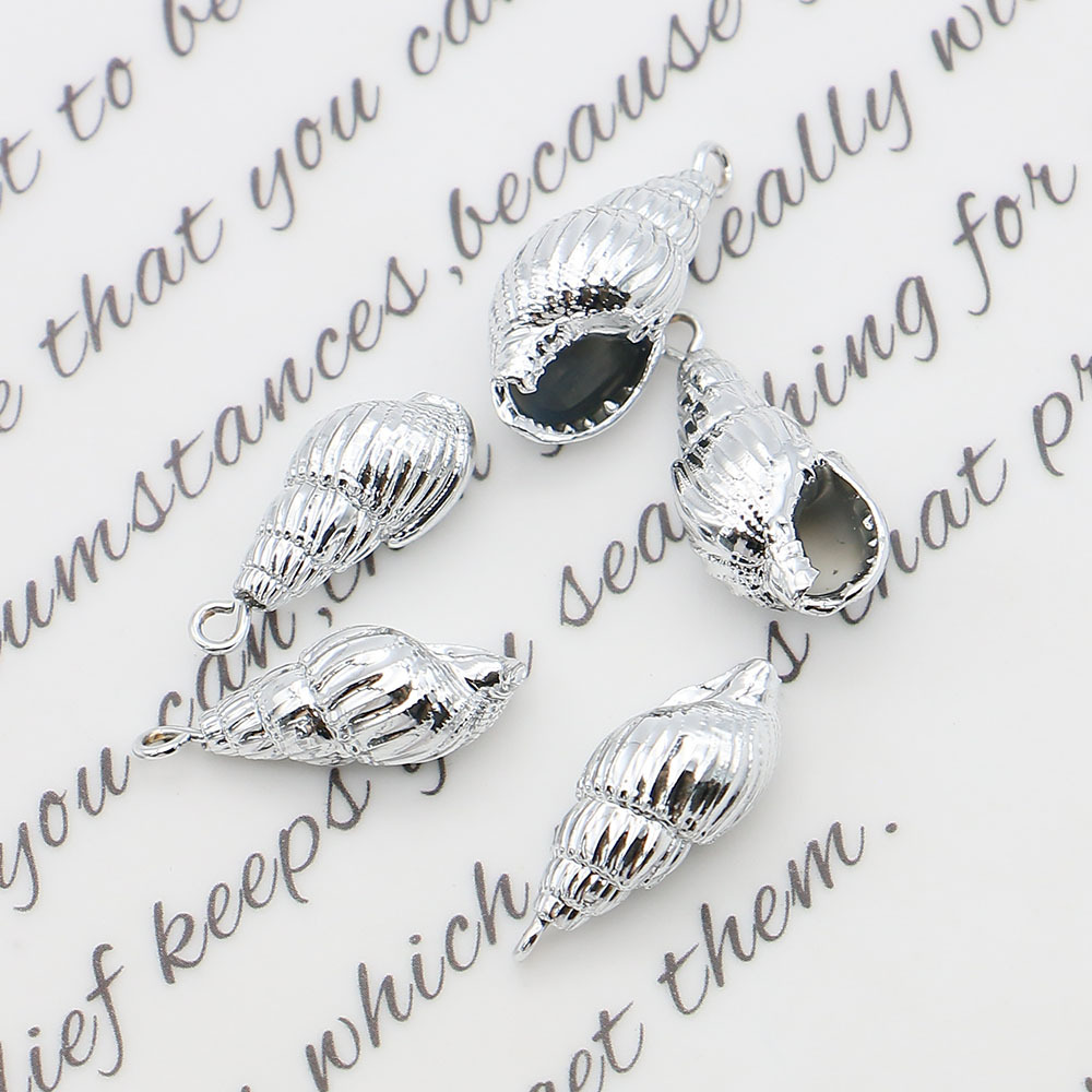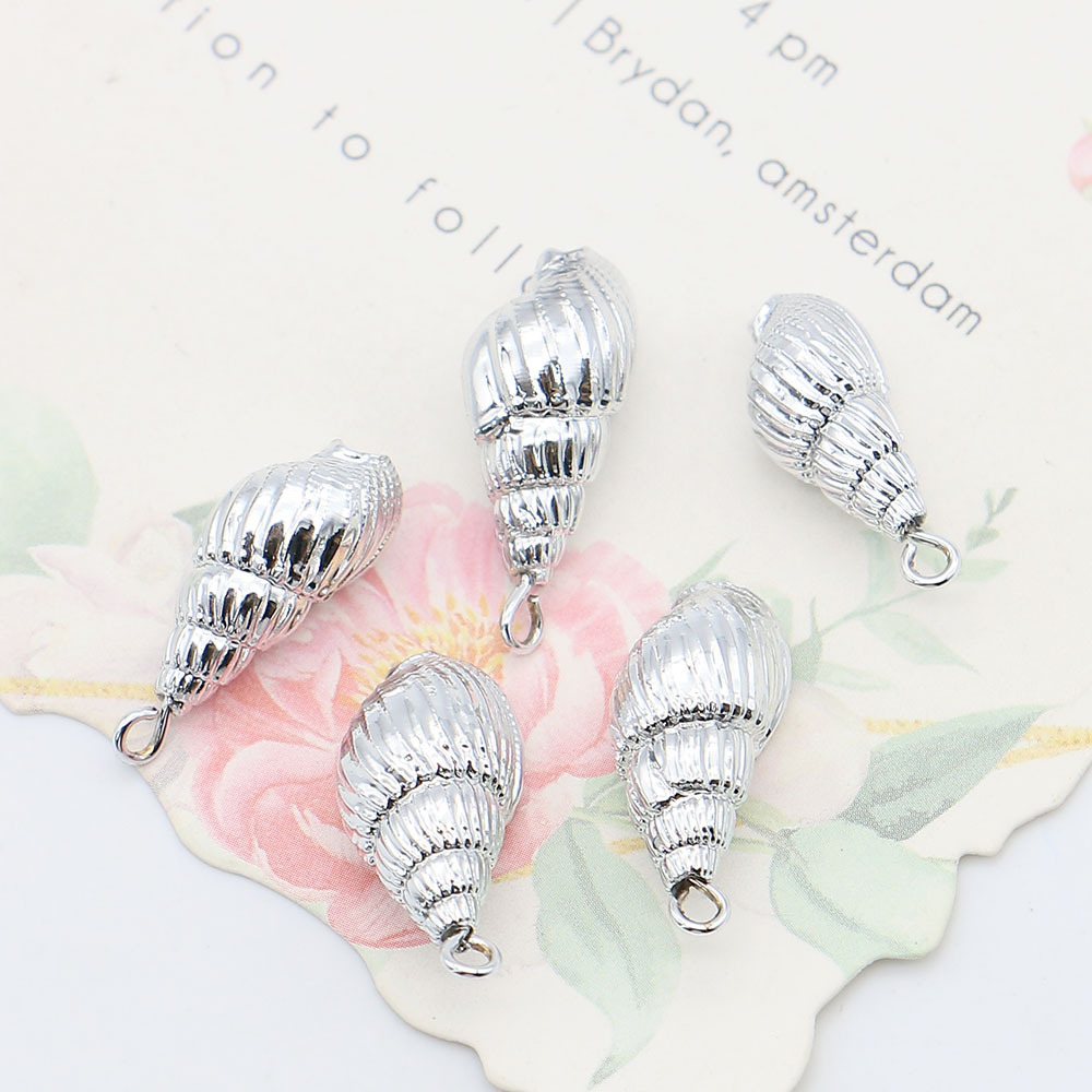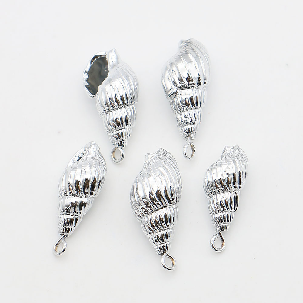 Nádúrtha Trumpa Shell Pendants, le Iarann, Conch, dath airgid plated, DIY, airgid, 9x20mm-11x23mm, Díolta De réir PC