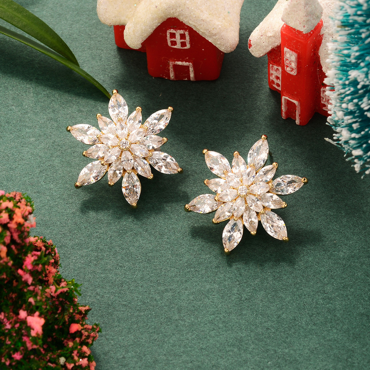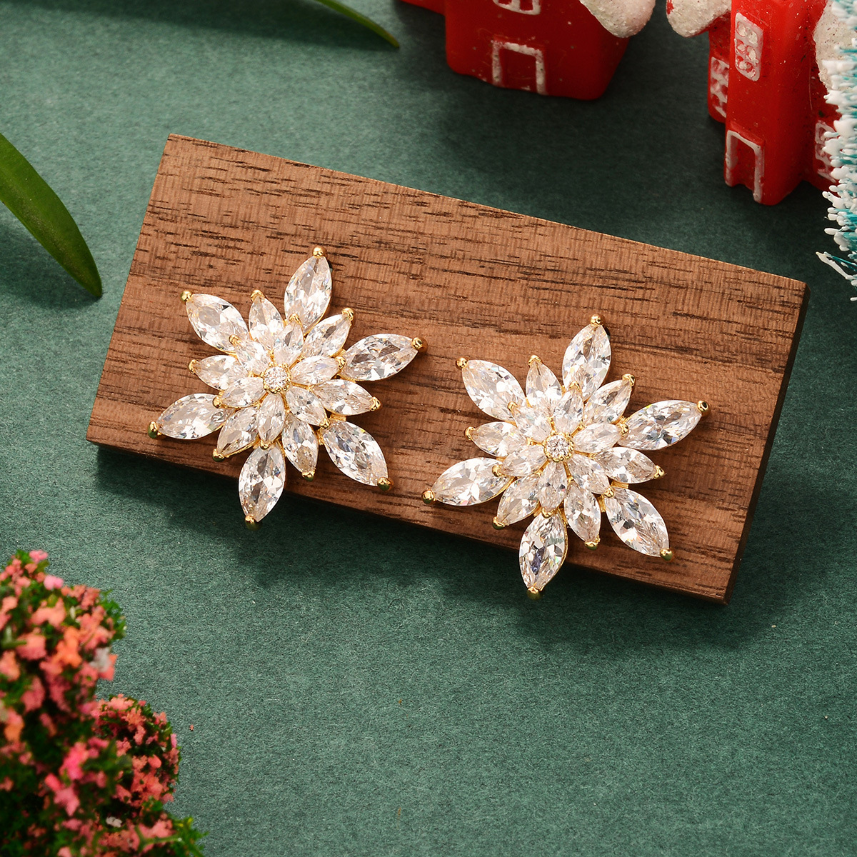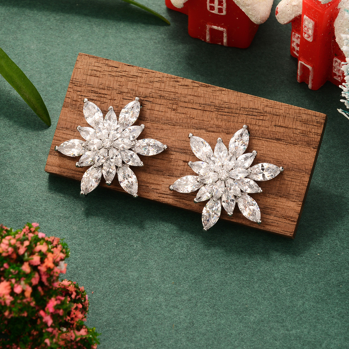 Nollag Earrings, Prás, Flower, plátáilte, Dearadh na Nollag & micrea réiteach zirconia ciúbach & do bhean, Díolta De réir Péire