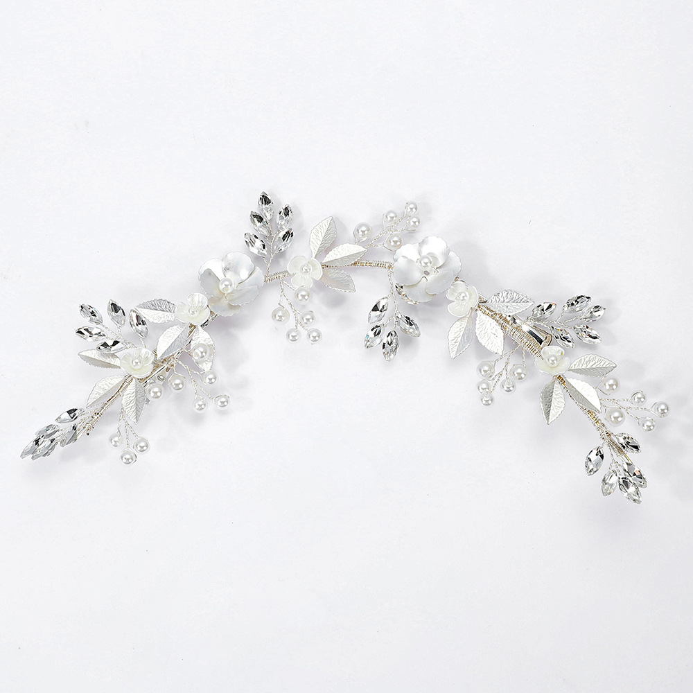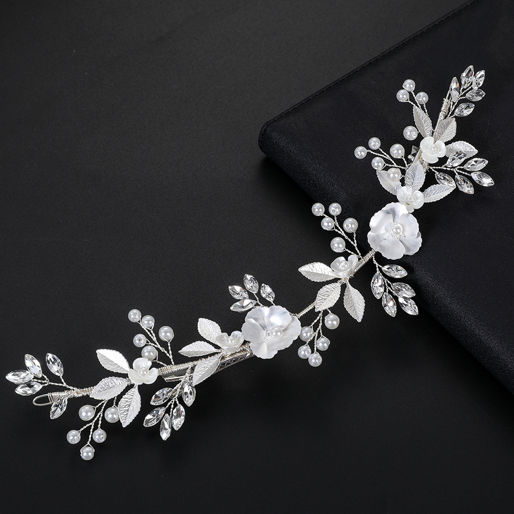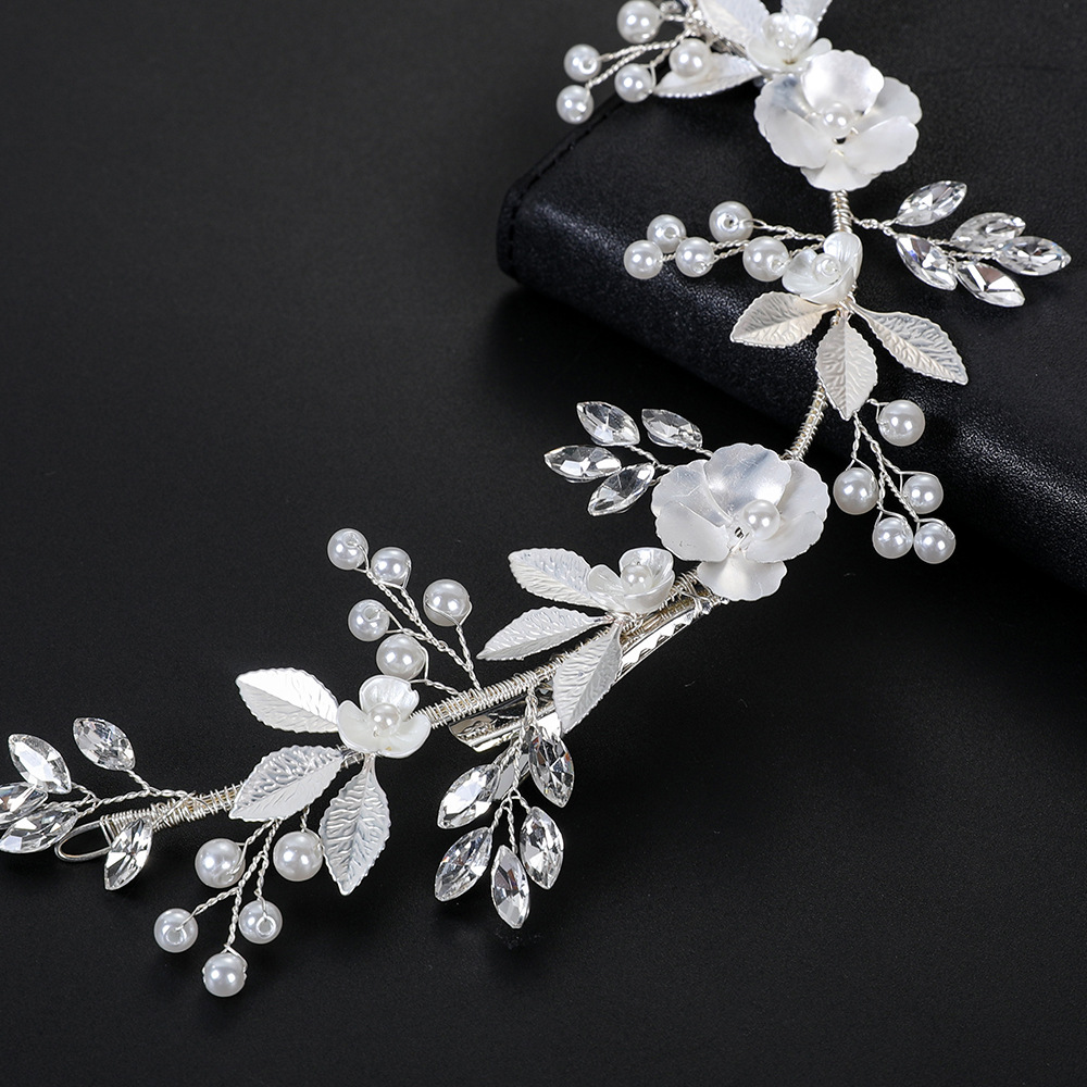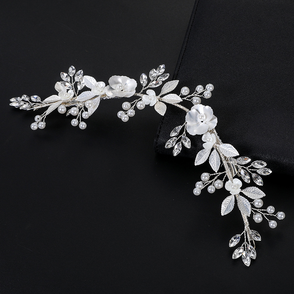 Bridal Gruaige Bláthanna, Sinc Alloy, le sreang práis & Polymer Clay & Crystal & Pearl Plaisteacha, lámhdhéanta, jewelry faisin & do bhean, airgid, 220x60x5mm, Díolta De réir PC