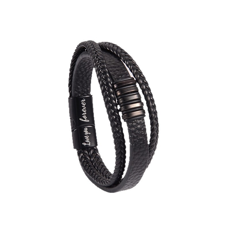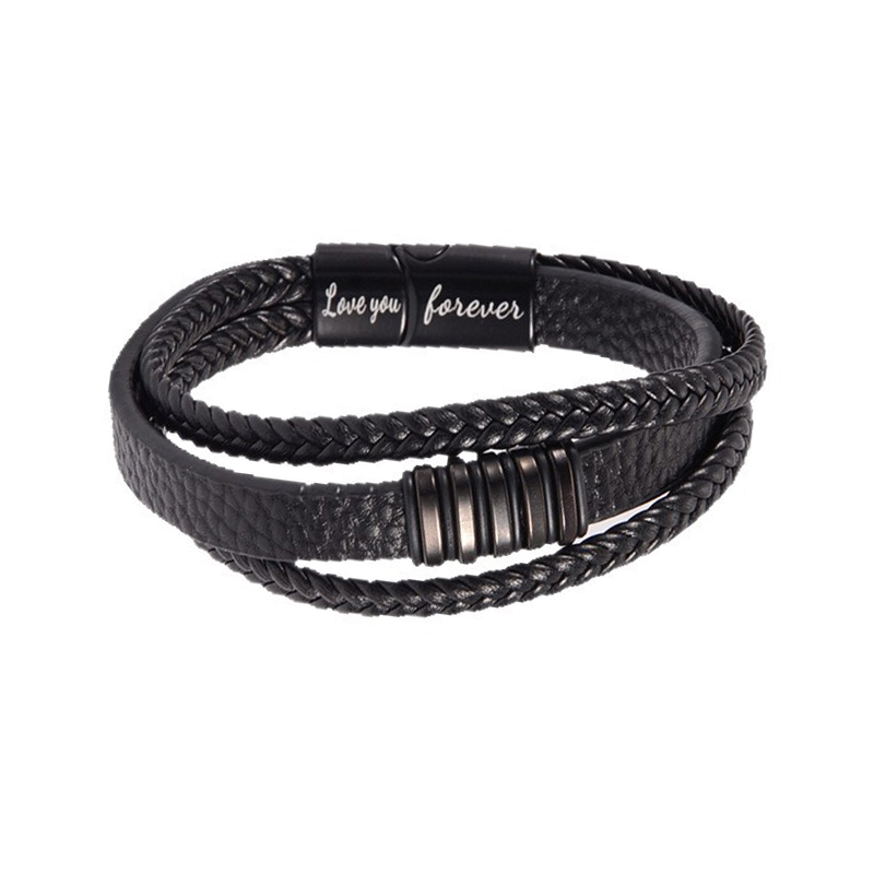PU Bracelet, le 304 Cruach dhosmálta, multilayer & méid éagsúla do rogha & do fear, dubh, Díolta De réir PC