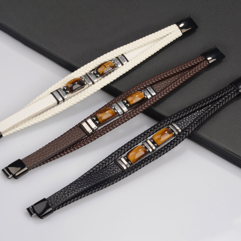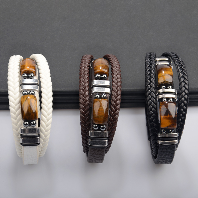 PU Bracelet, le Tíogair Súl & 304 Cruach dhosmálta, lámhdhéanta, multilayer & ábhair éagsúla do rogha & do fear, dathanna níos mó le haghaidh rogha, Díolta De réir PC