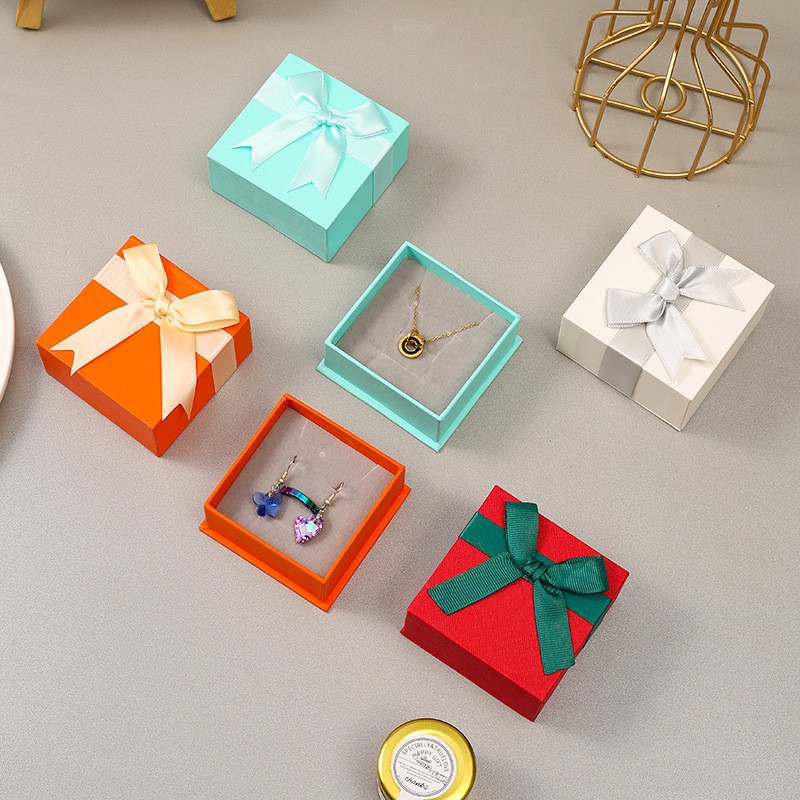 Páipéar bosca bronntanas, Cearnóg, le maisiú bowknot ribín, dathanna níos mó le haghaidh rogha, 75x75x40mm, Díolta De réir PC