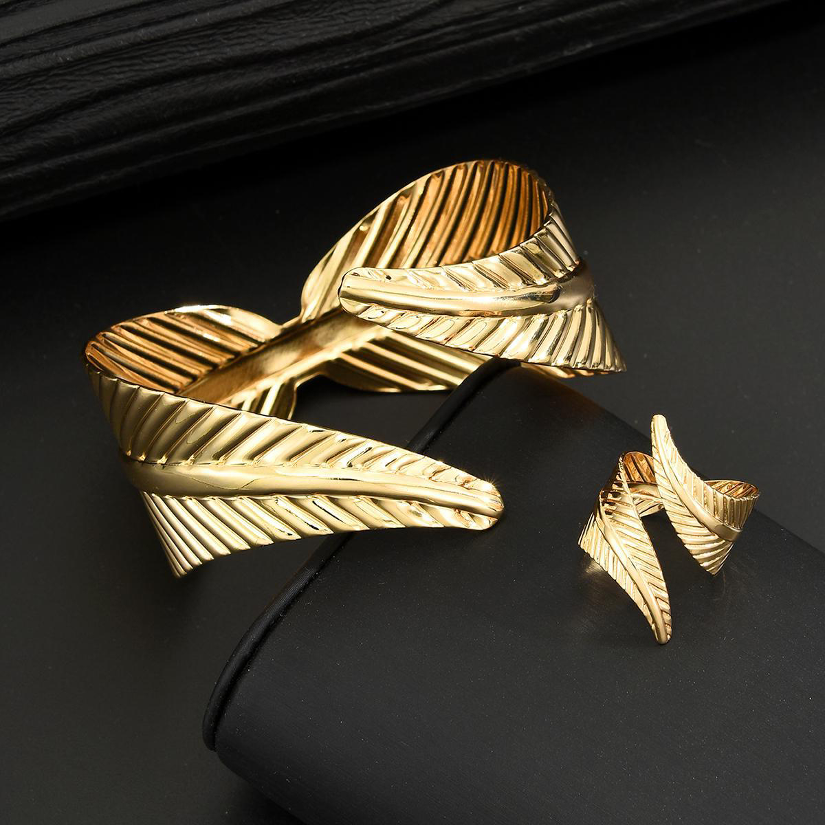 Seiteanna Jewelry Alloy Sinc, bangle & fáinne finger, Sinc Alloy, Leaf, plátáilte, 2 phíosa & jewelry faisin & do bhean, órga, Díolta De réir Socraigh