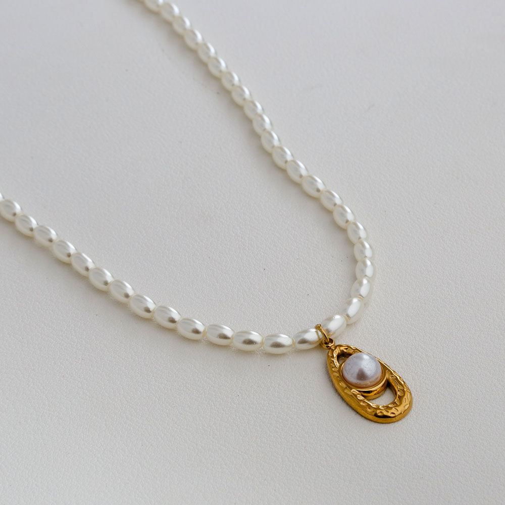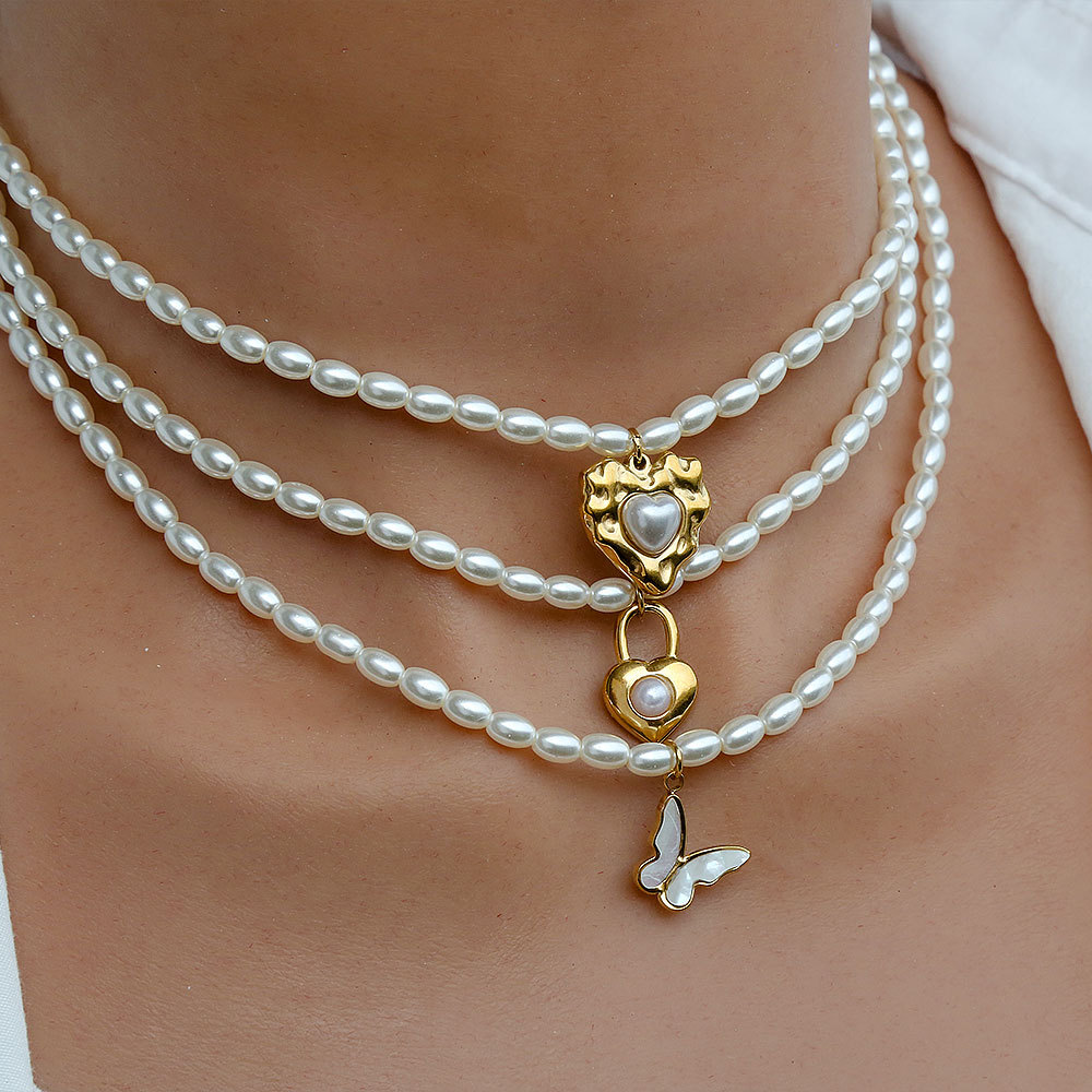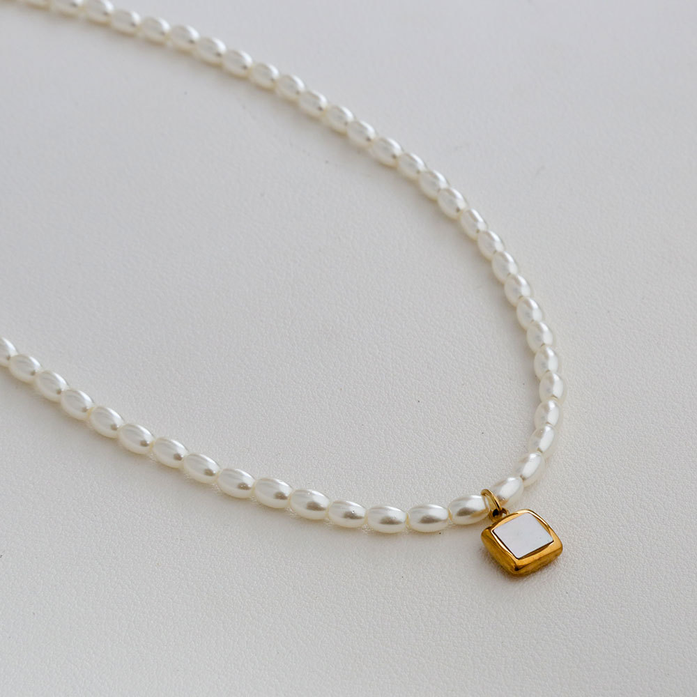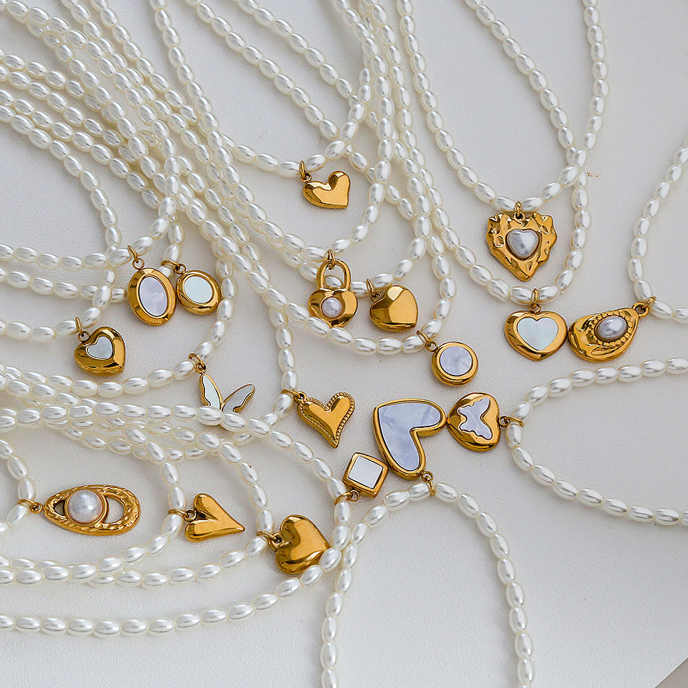 Pearl Plaisteacha Muince, le Cruach Tíotáiniam & Shell, dath an óir plated, stíleanna éagsúla do rogha & do bhean, Fad Thart 16 Inse, Díolta De réir PC