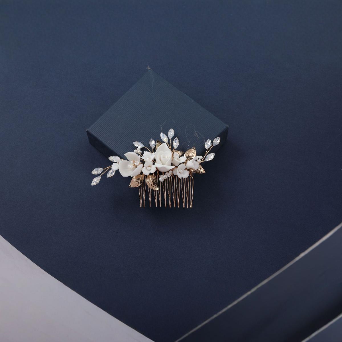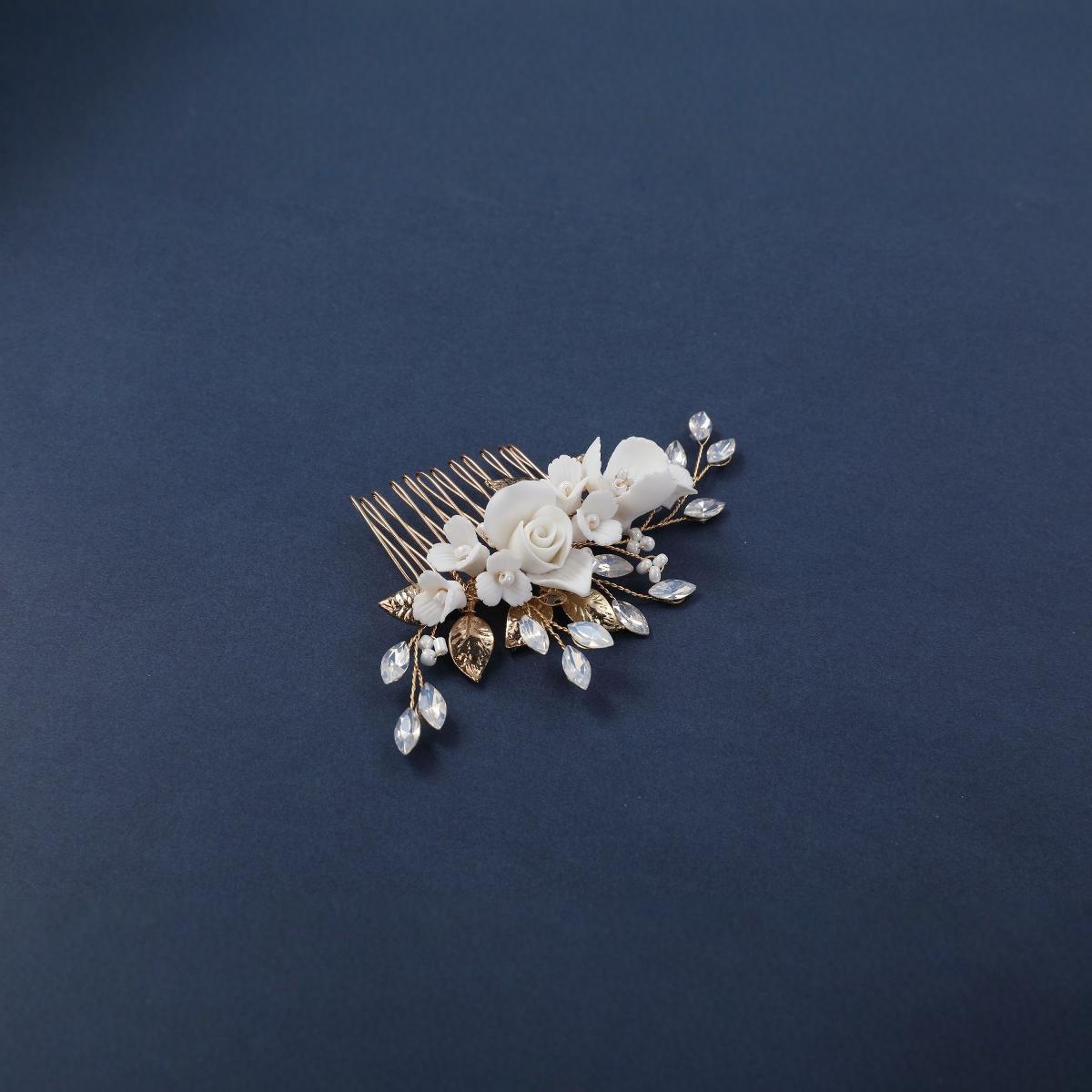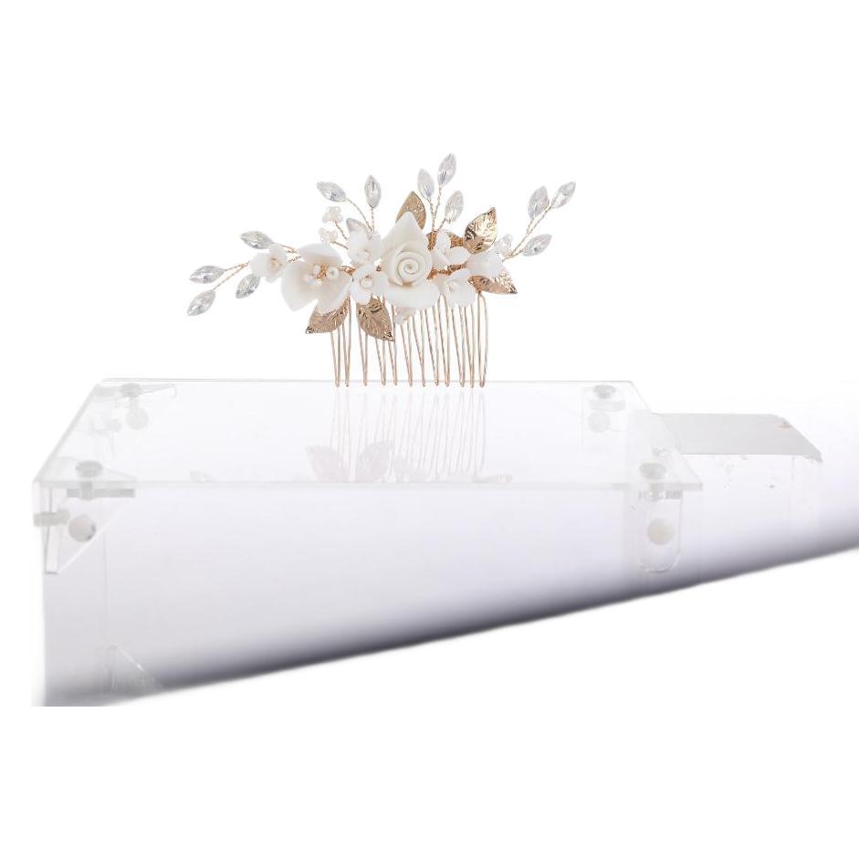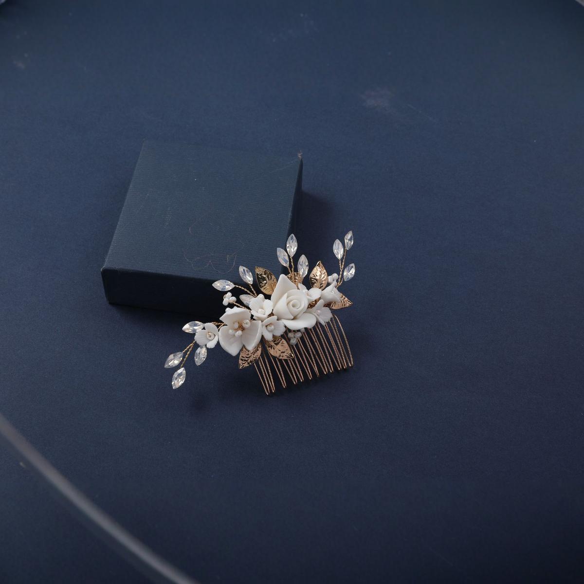 Maisiúil Gruaige Combs, Sinc Alloy, le sreang práis & Polymer Clay & Crystal & Pearl Plaisteacha, lámhdhéanta, jewelry faisin & do bhean, órga, 140x80x10mm, Díolta De réir PC