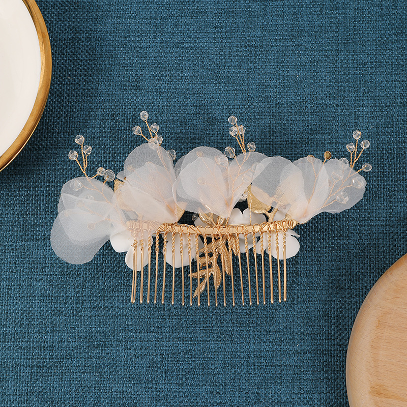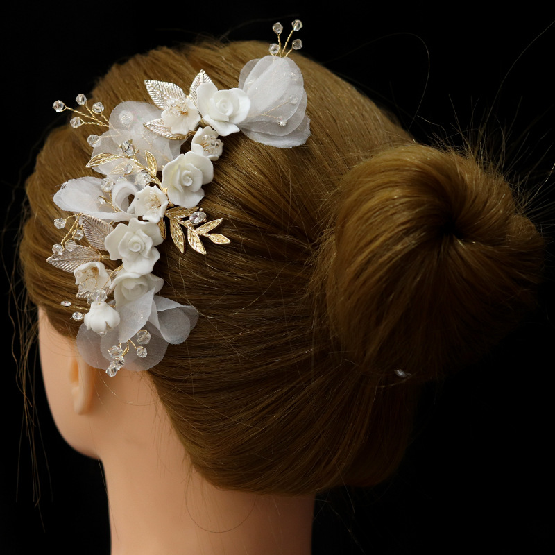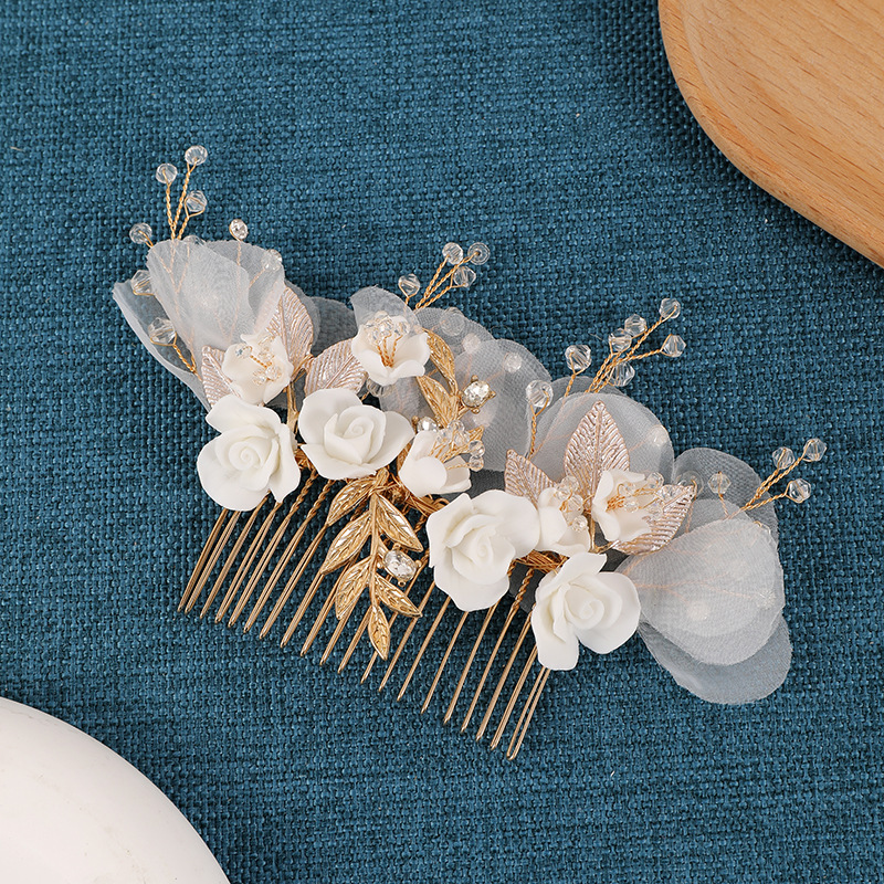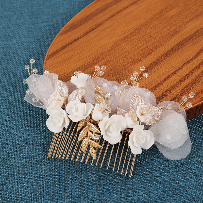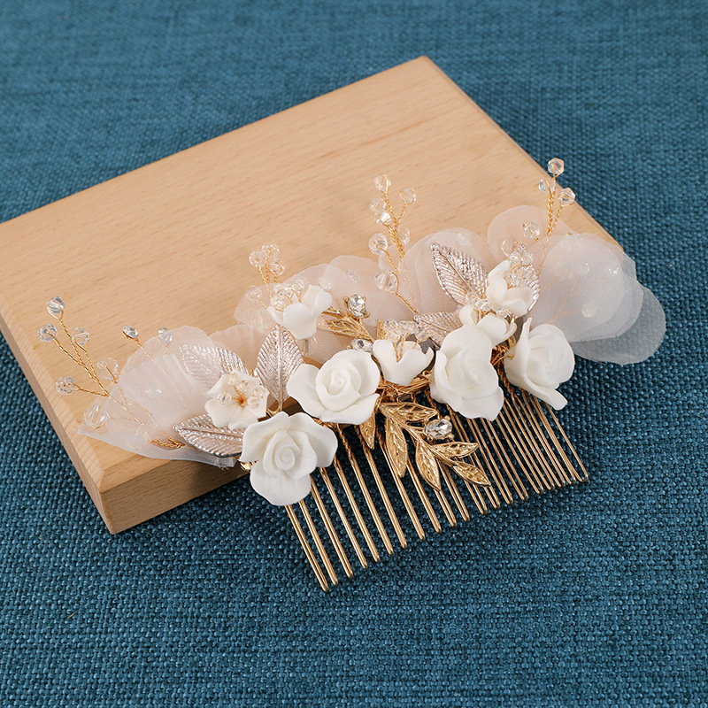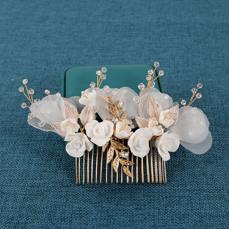 Maisiúil Gruaige Combs, Sinc Alloy, le Uige & sreang práis & Polymer Clay & Crystal, lámhdhéanta, jewelry faisin & do bhean, órga, 140x140x65mm, Díolta De réir PC