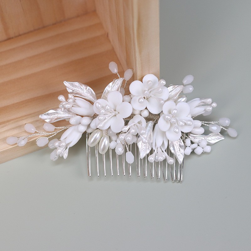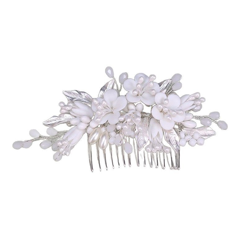 Maisiúil Gruaige Combs, Sinc Alloy, le sreang práis & Polymer Clay & Pearl Plaisteacha, lámhdhéanta, jewelry faisin & do bhean, airgid, 120x70x70mm, Díolta De réir PC