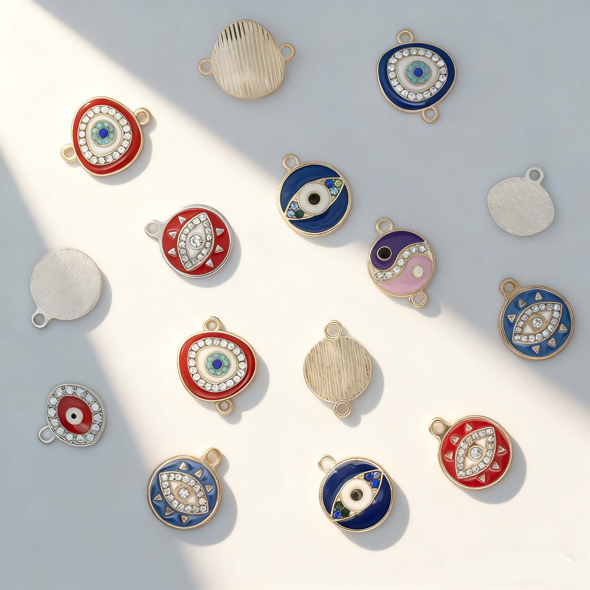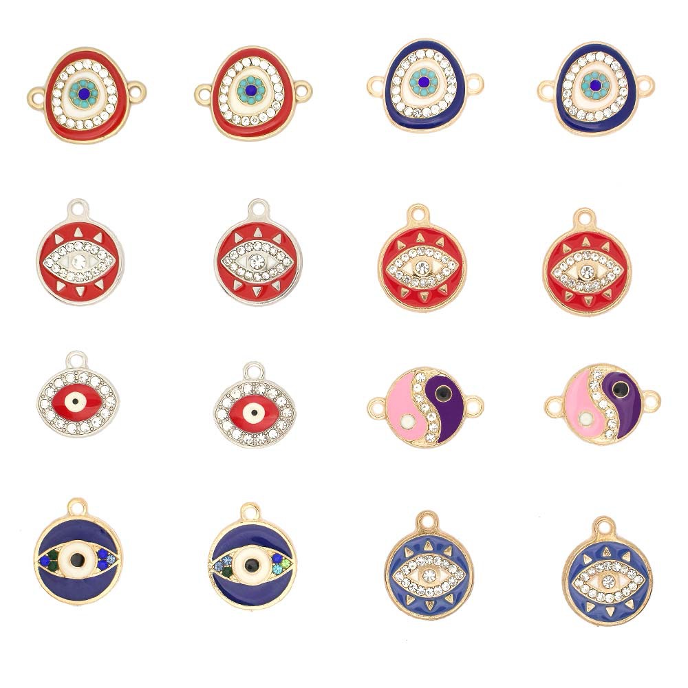 Pendants Eye olc, Sinc Alloy, dath an óir plated, DIY & cruan & le rhinestone, dathanna níos mó le haghaidh rogha, 100ríomhairí pearsanta/Mála, Díolta De réir Mála