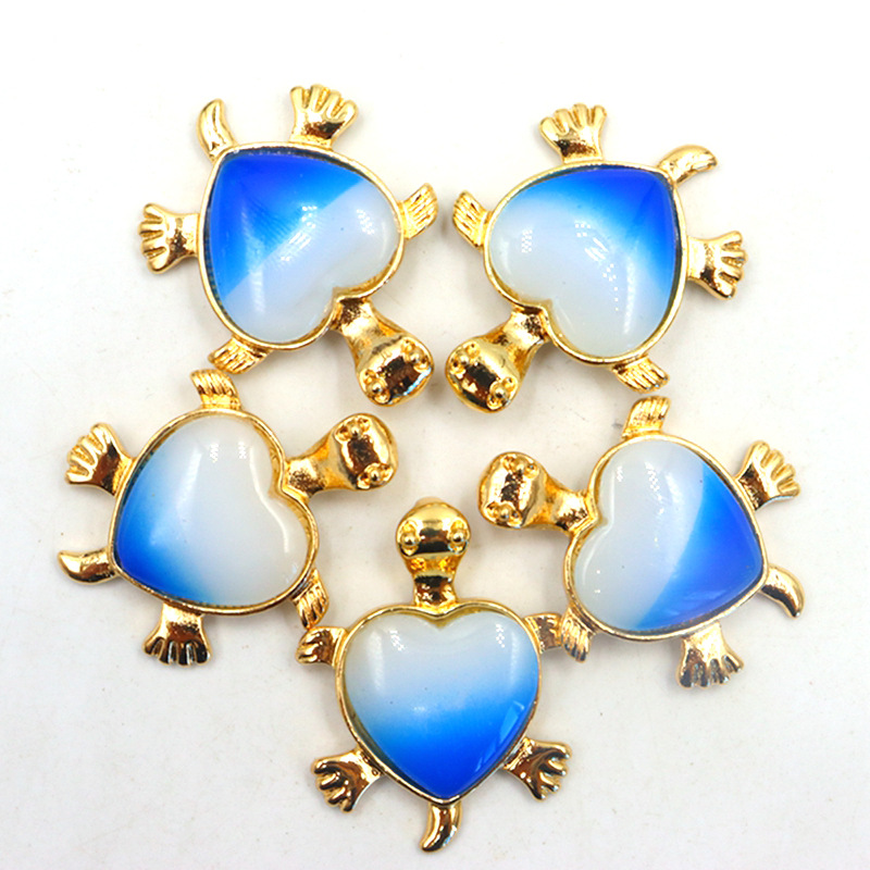 Pendants Gemstone Jewelry, Sinc Alloy, le Gemstone, Croí, dath an óir plated, DIY, gorm, nicil, luaidhe & caidmiam saor in aisce, 30x38mm, Díolta De réir PC