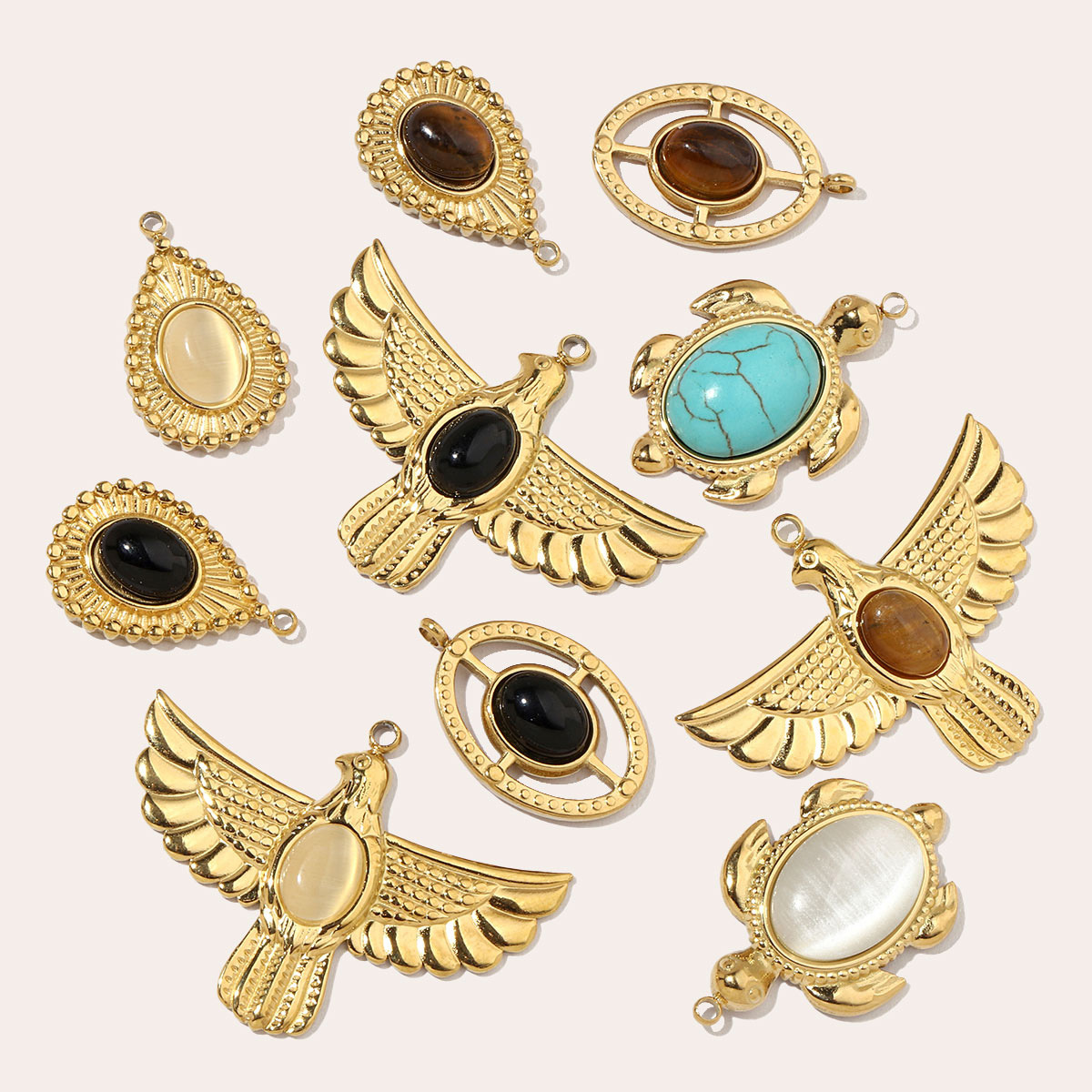 Pendants Gemstone Jewelry, le 304 Cruach dhosmálta, DIY, dathanna níos mó le haghaidh rogha, 15.10x4.95x24.60mm, Díolta De réir PC