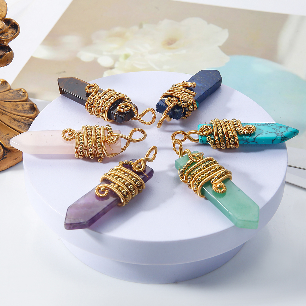 Pendants Gemstone Jewelry, Prás, le Gemstone, plátáilte, DIY & le rhinestone, dathanna níos mó le haghaidh rogha, nicil, luaidhe & caidmiam saor in aisce, 13.07x6.14x22.38mm, Díolta De réir PC