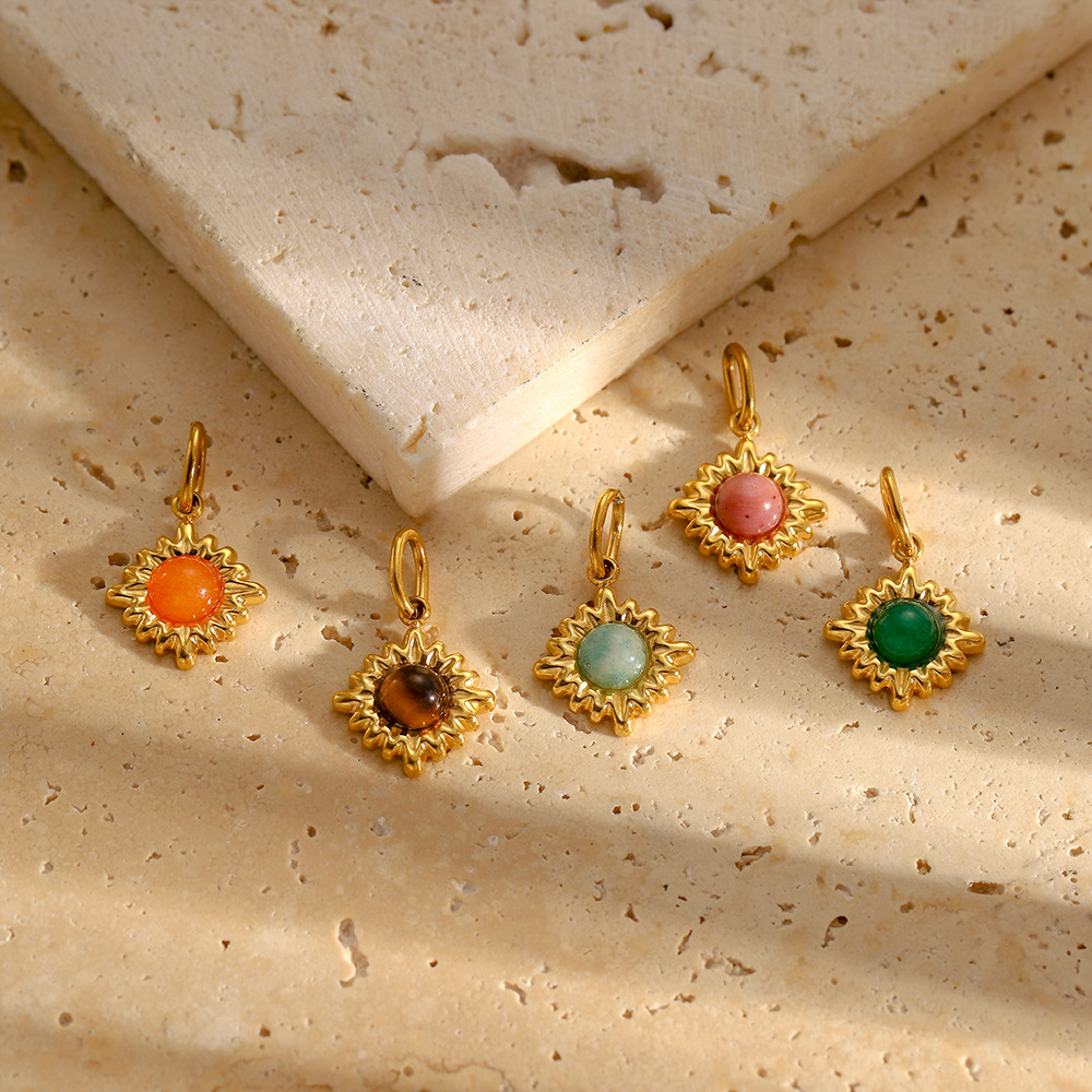 Pendants Gemstone Jewelry, 304 Cruach dhosmálta, le Gemstone, Sun, dath an óir plated, DIY, dathanna níos mó le haghaidh rogha, Díolta De réir PC