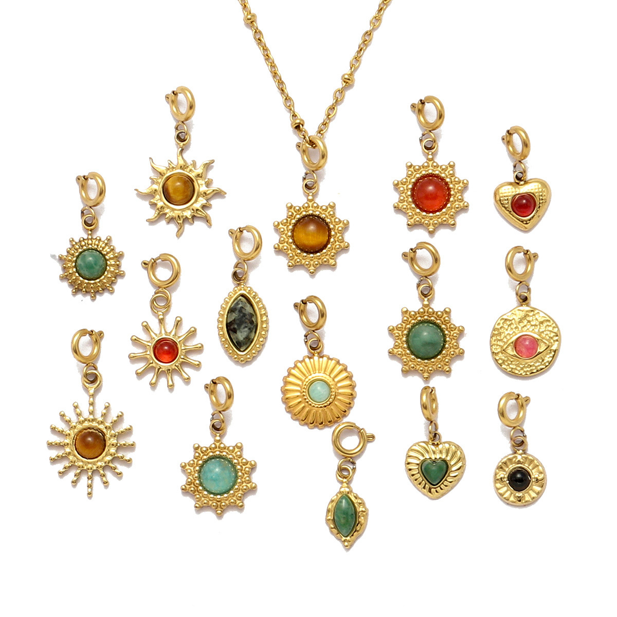 Pendants Jewelry Cruach dhosmálta, 304 Cruach dhosmálta, le Gemstone, Cruth Difriúil do Rogha & DIY, dathanna níos mó le haghaidh rogha, 3ríomhairí pearsanta/Mála, Díolta De réir Mála