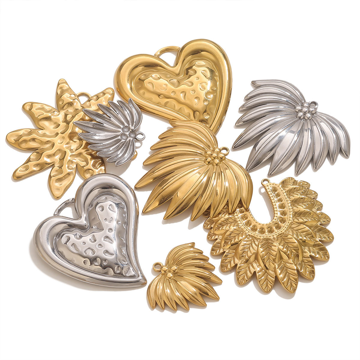 1:Gold pendant - love heart on the left2:Steel color pendant-heart on the left3:Golden pendant - love on the right4:Steel color pendant-heart on the right5:Gold pendant-u-shaped double hole leaves6:Steel color pendant-u-shaped double hole leaves7:Gold pendant - embossed leaves8:Steel color pendant - embossed leaves9:Gold pendant-44*36 leaves10:Steel color pendant-44*36 leaves11:Gold pendant-27*25 leaves12:Steel color pendant-27*25 leaves