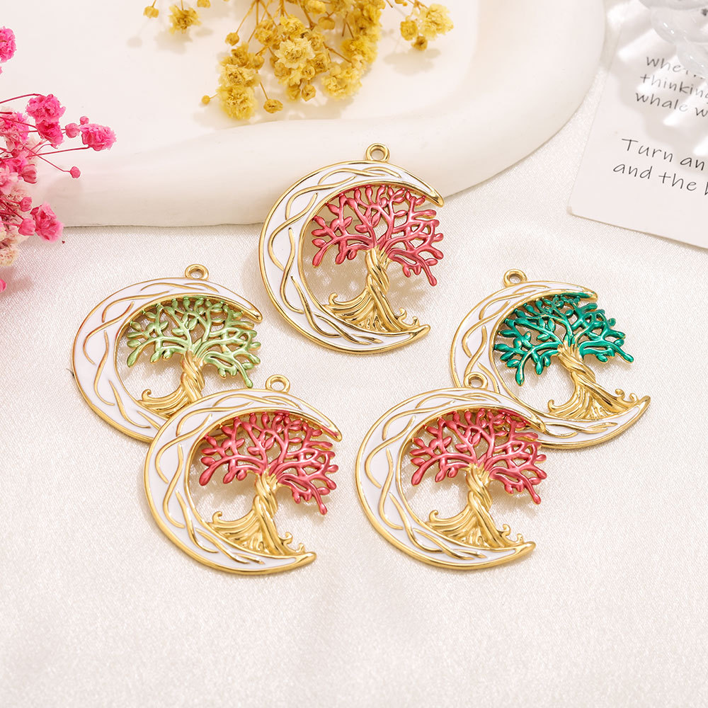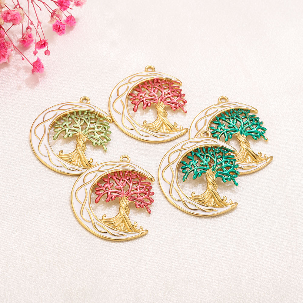 Pendants Jewelry Cruach dhosmálta, 304 Cruach dhosmálta, Crann, dath an óir plated, DIY & cruan, dathanna níos mó le haghaidh rogha, 35x43mm, Poll:Thart 2.2mm, Díolta De réir PC