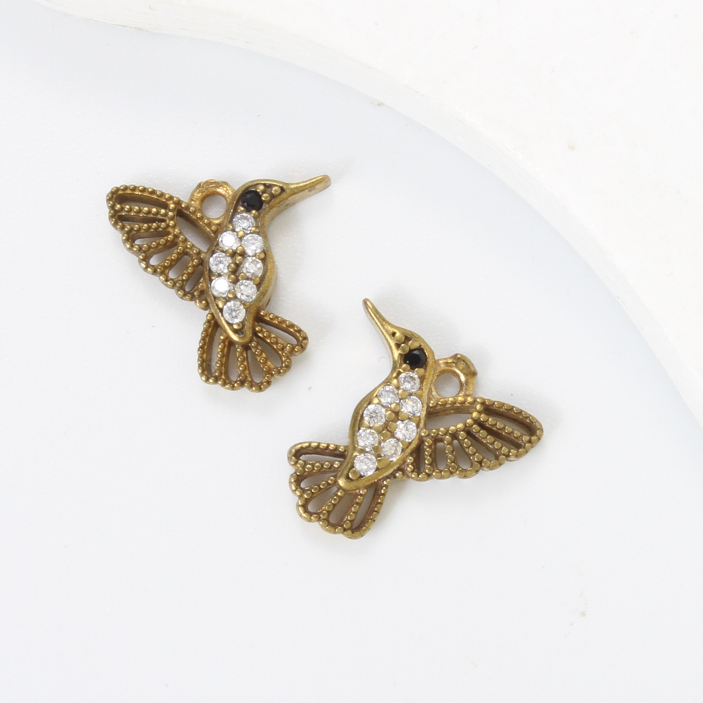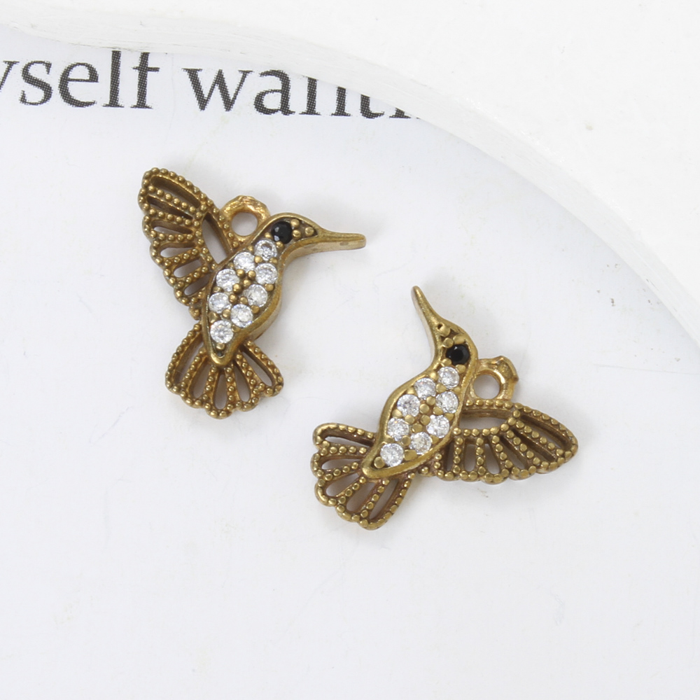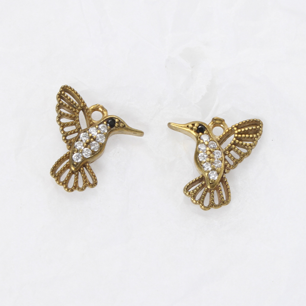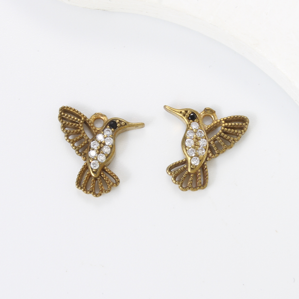 Pendants Prás Rhinestone, Éan, plátáilte, DIY & le rhinestone, órga, nicil, luaidhe & caidmiam saor in aisce, 12.60x7x2.30mm, Díolta De réir PC